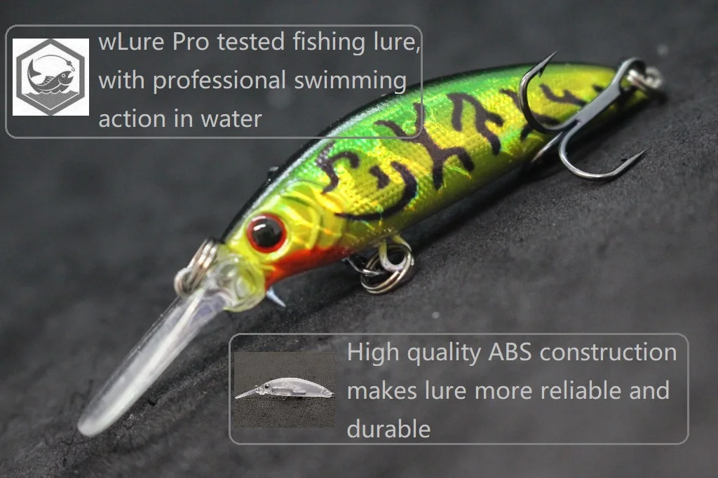 Crafted with high-quality ABS construction, this lure boasts excellent durability and longevity. Our black nickle treble hooks are razor-sharp and designed to keep fish hooked securely.