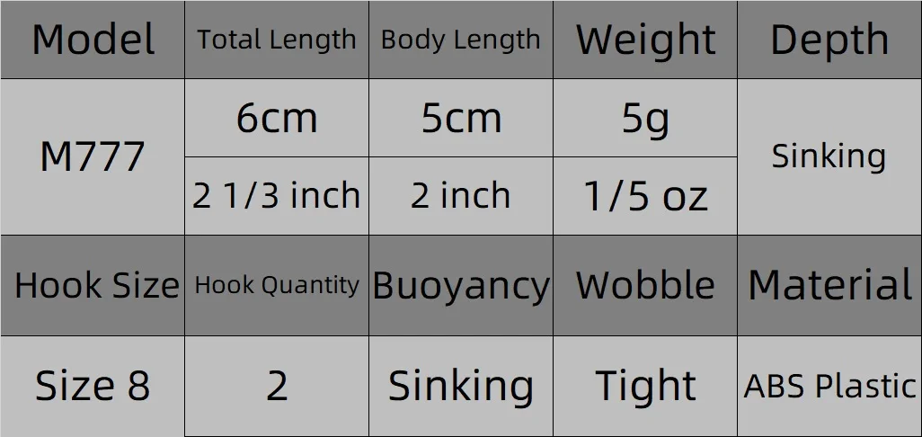 Nos complace presentar nuestro último señuelo de pesca, diseñado para brindar a los pescadores la mejor experiencia de pesca.Este señuelo hundido mide 6 cm de largo con una longitud de cuerpo de 5 cm y pesa solo 5 g. Su acción de oscilación apretada y de hundimiento lento lo convierten en una excelente opción para capturar una amplia variedad de especies de peces.