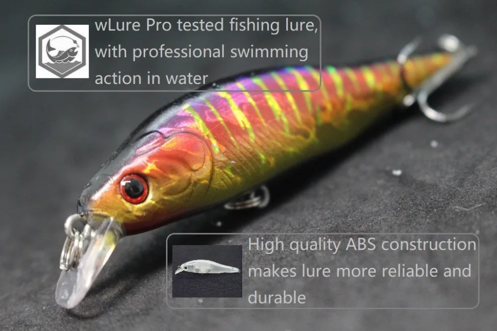 El señuelo está hecho de material ABS de alta calidad, lo que lo hace duradero y duradero.También cuenta con anzuelos triples curvados redondos de níquel negro, que proporcionan anzuelos confiables.Además, el señuelo tiene un revestimiento epoxi en el acabado, lo que aumenta su durabilidad y longevidad.