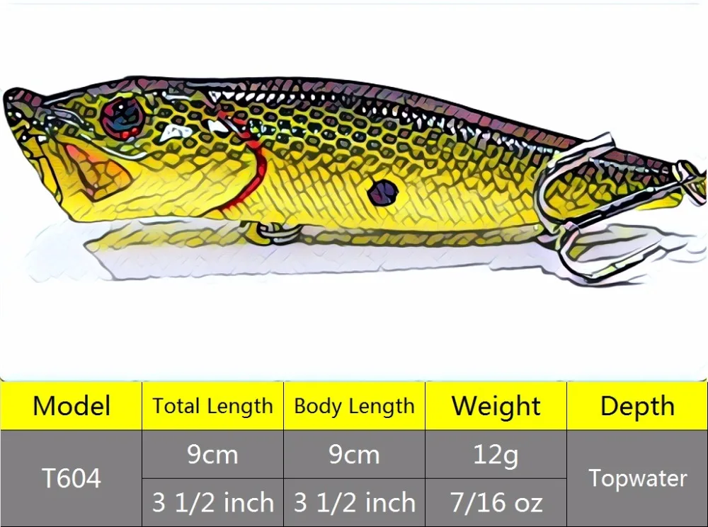 WLure-señuelo duro de boca roja, 9cm, 12g, Topwater, con sonido fuerte de traqueteo y agua de alta salpicadura, Señuelos de Pesca T604