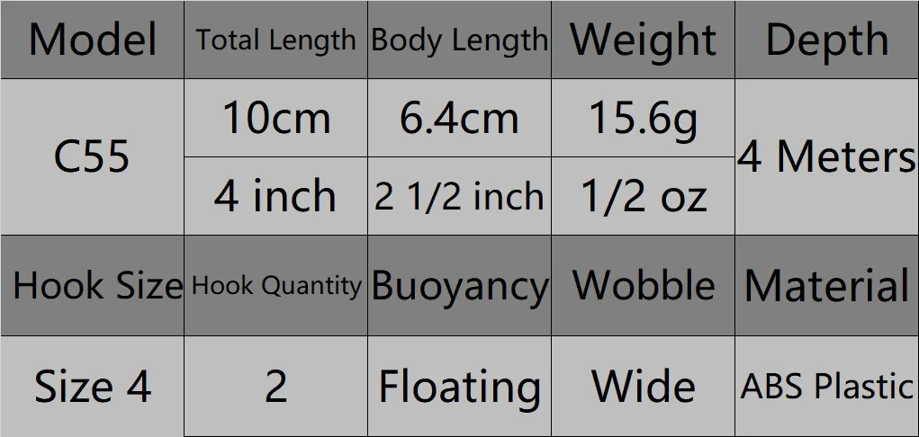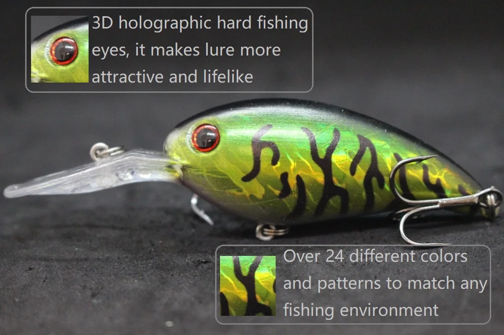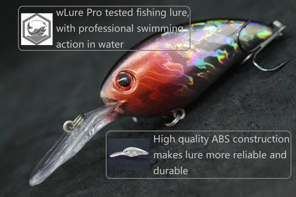 El señuelo es un Crankbait diseñado para su uso en aguas profundas, con una longitud de 10,2 cm y una longitud del cuerpo de 6,4 cm. Pesa 14,2g y tiene un tamaño de anzuelo de 4, por lo que es adecuado para la captura de peces de tamaño mediano. Tiene un bamboleo amplio y una acción flotante lenta, lo que lo convierte en un cebo eficaz para apuntar a ciertas especies de peces.