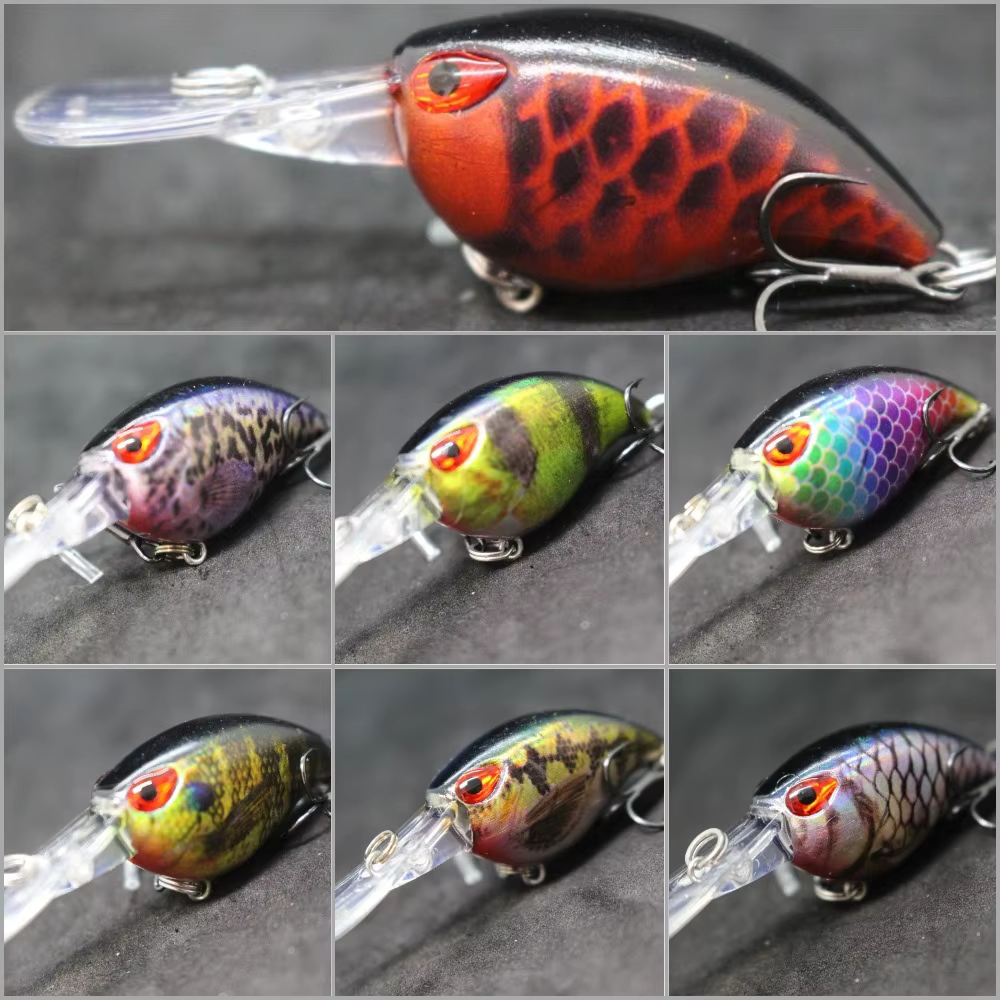 WLure-señuelo de pesca Crankbait, 6cm, 5g, buceo profundo, pequeña hoja de corte de piel Real, anzuelos triples, oscilación apertada HC770