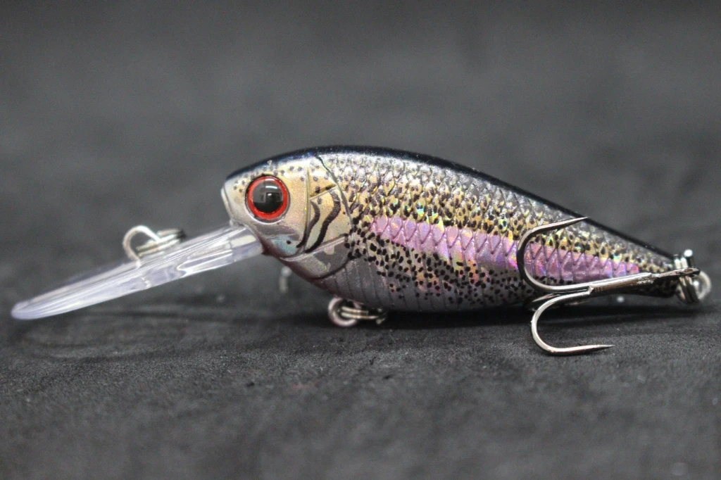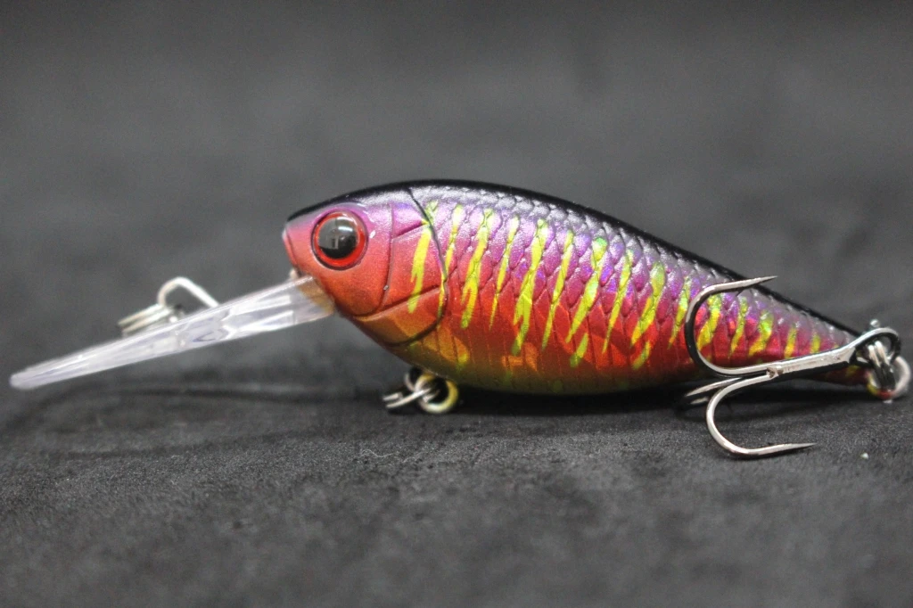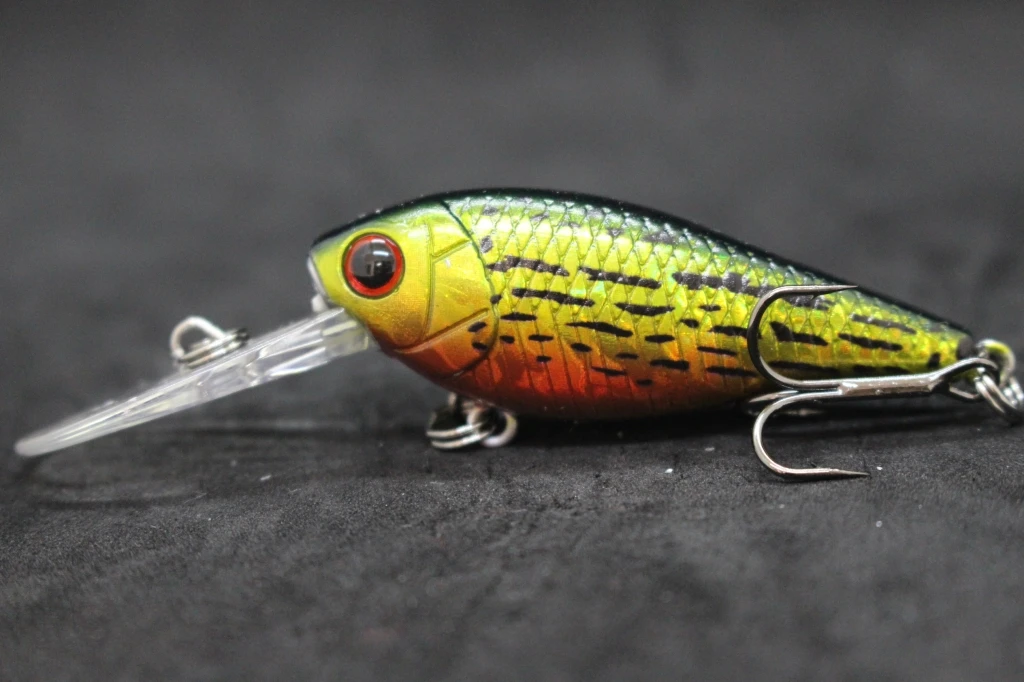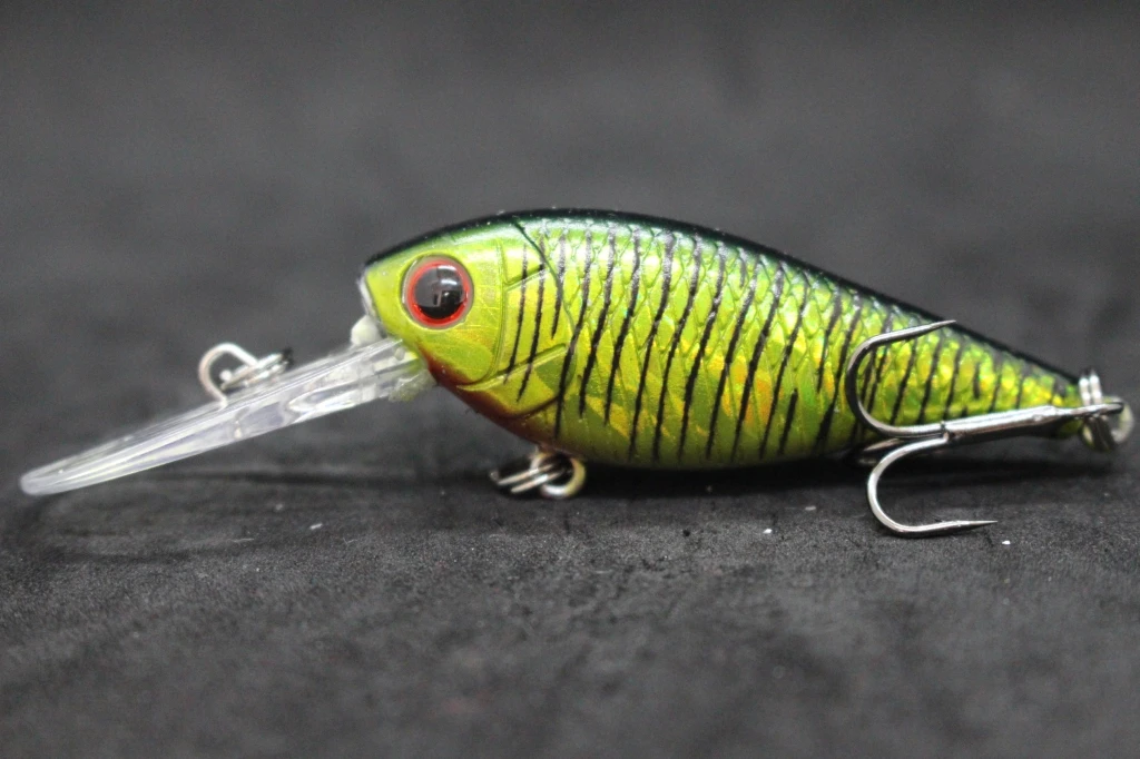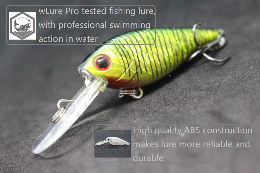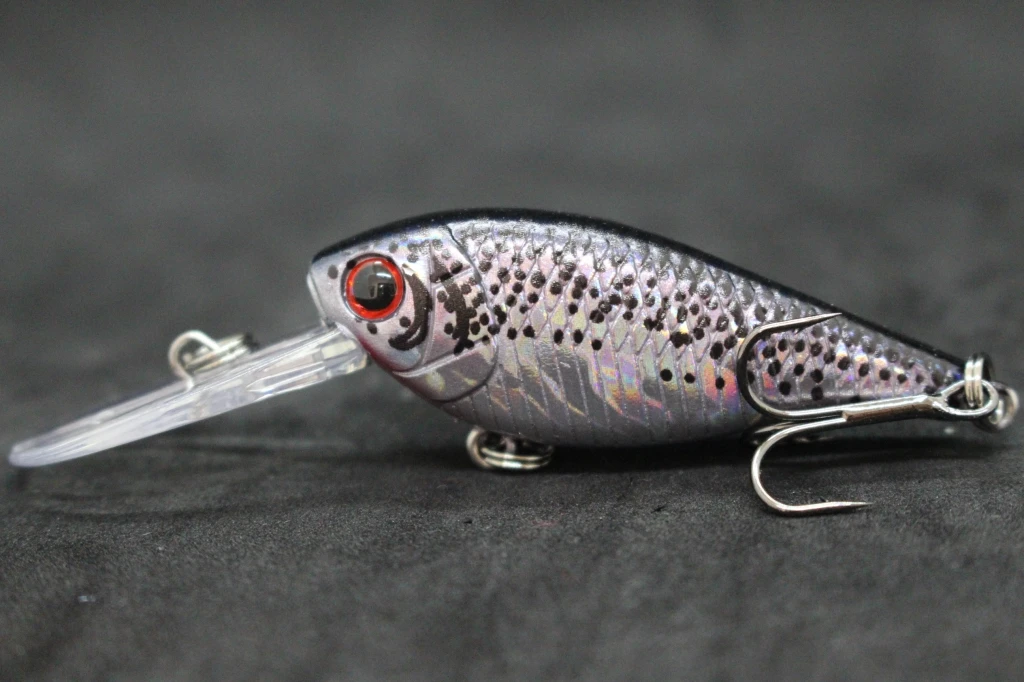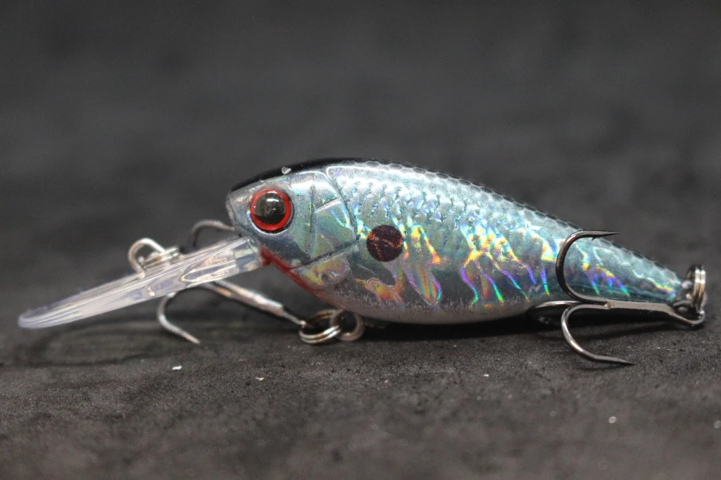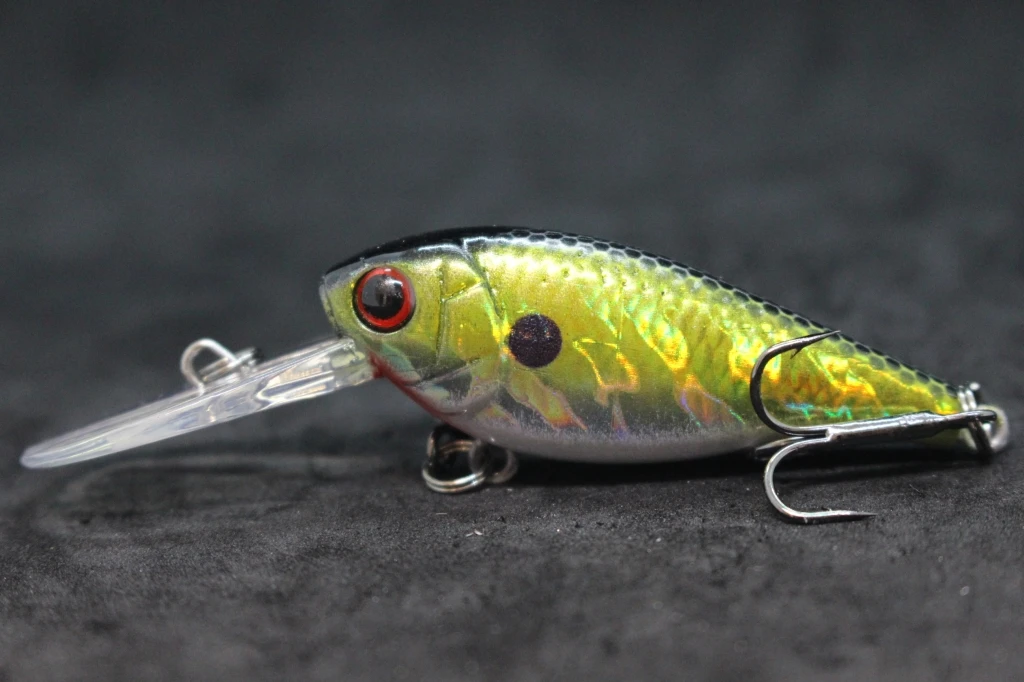 El señuelo de pesca mide 3 1/5 de pulgada (8,1 cm) de largo, pesa 1/4 oz (7,1 g) y tiene una profundidad de inmersión profunda.El tamaño del anzuelo recomendado para este señuelo es 6 y presenta una amplia acción de tambaleo cuando se recupera.