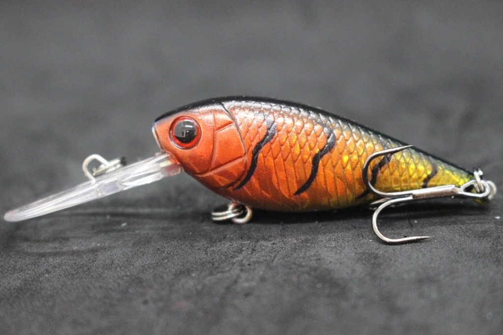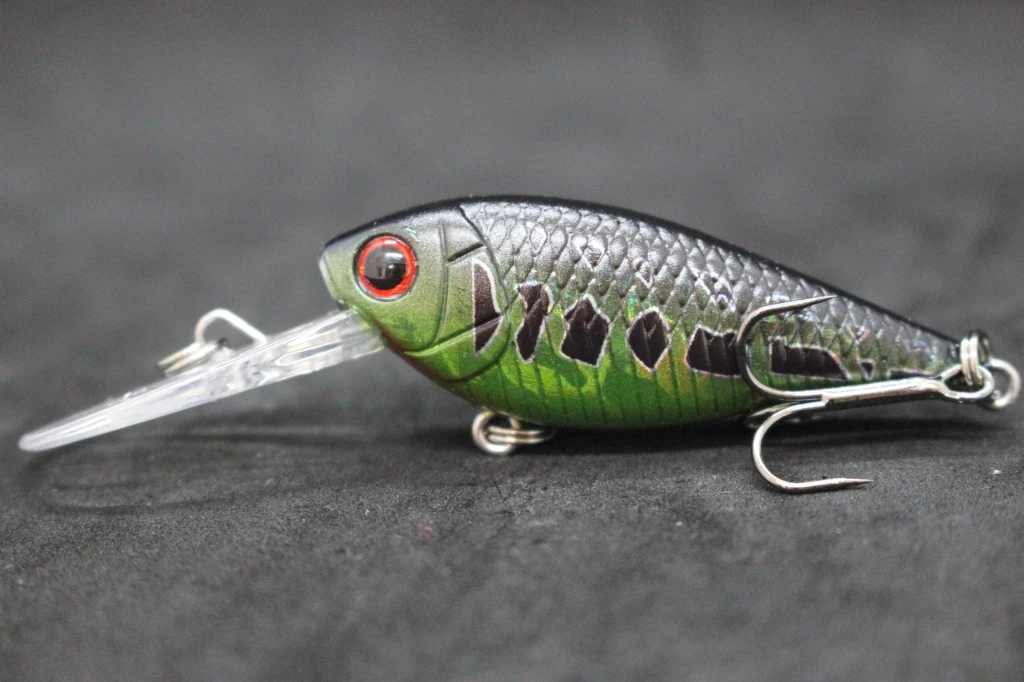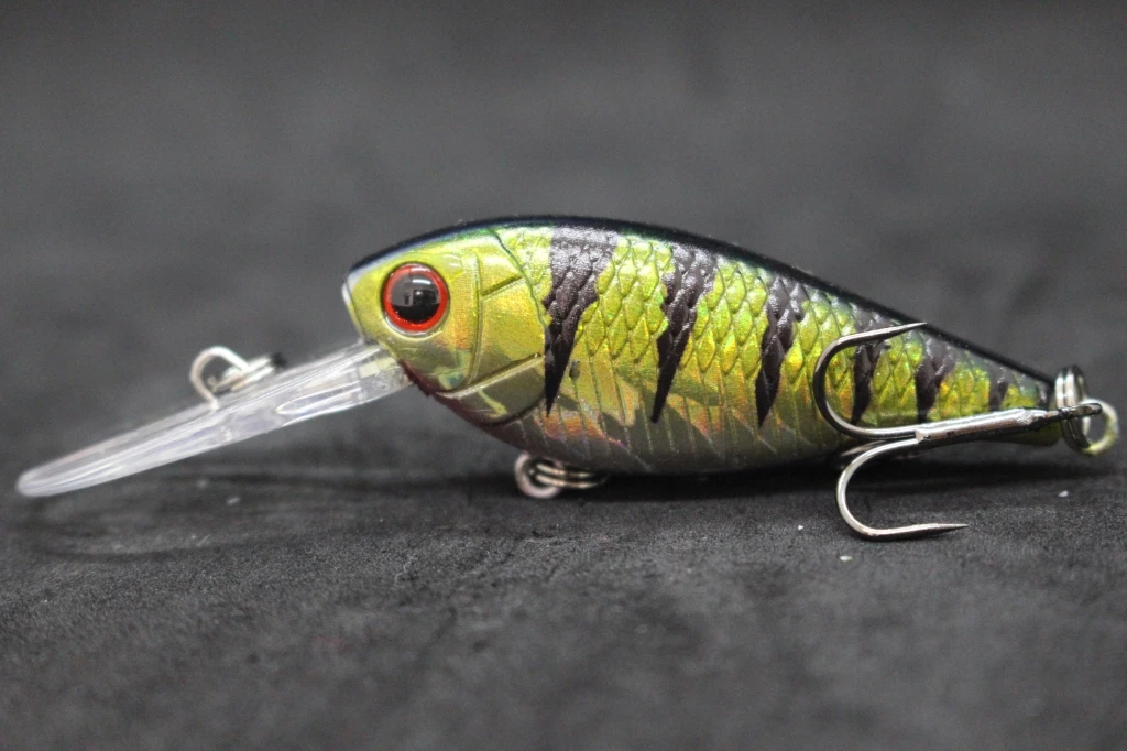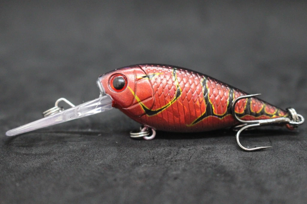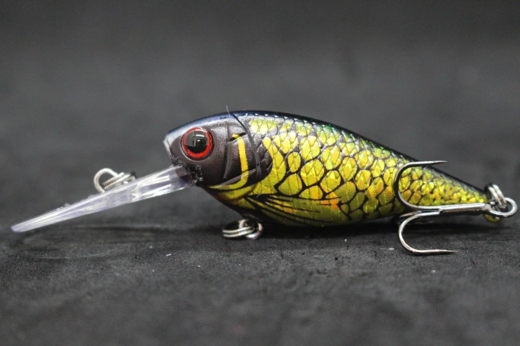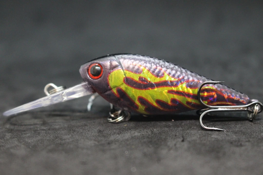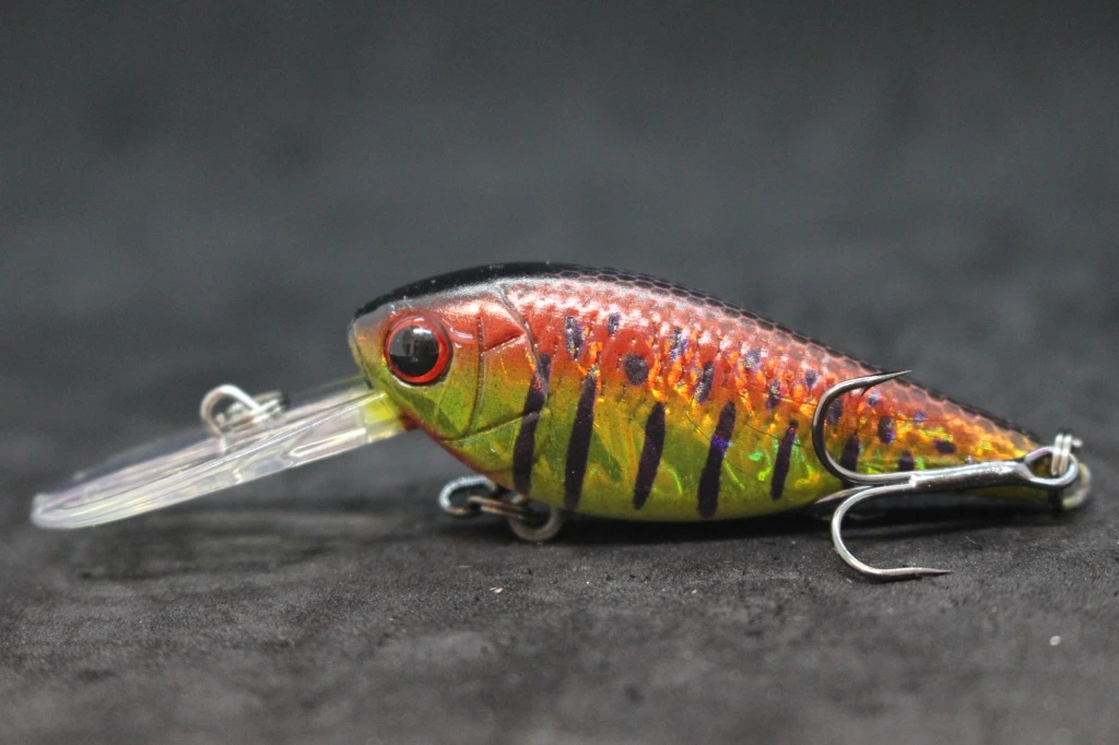 El señuelo de pesca mide 3 1/5 de pulgada (8,1 cm) de largo, pesa 1/4 oz (7,1 g) y tiene una profundidad de inmersión profunda.El tamaño del anzuelo recomendado para este señuelo es 6 y presenta una amplia acción de tambaleo cuando se recupera.
