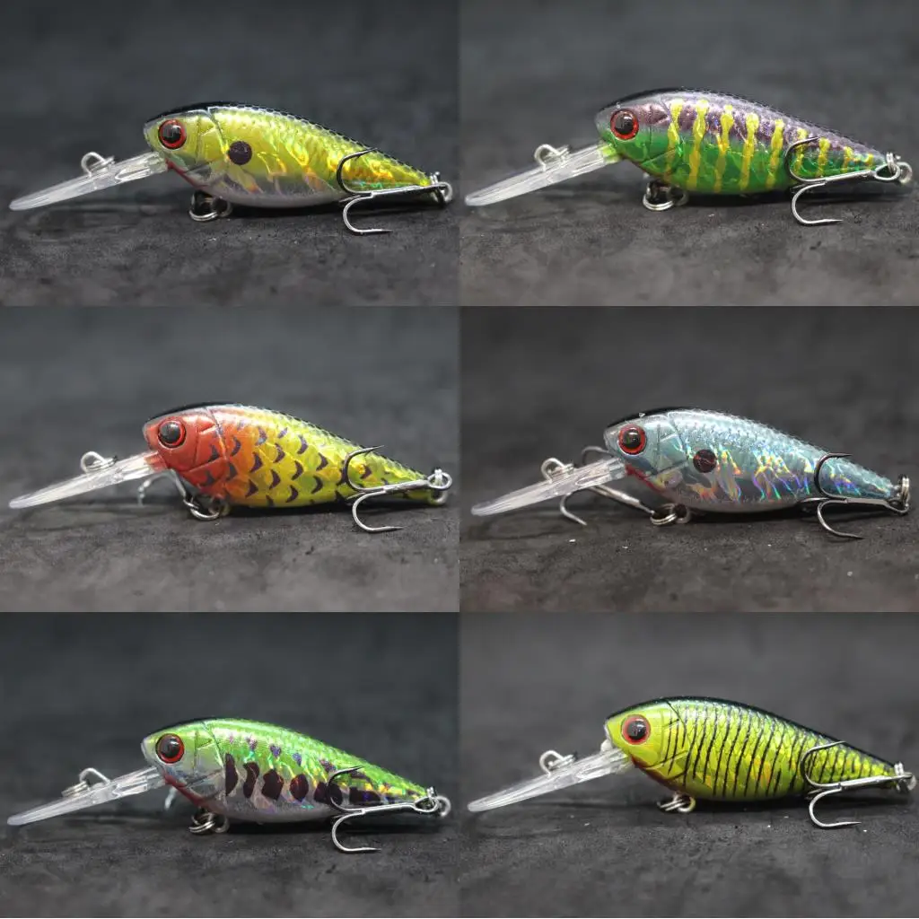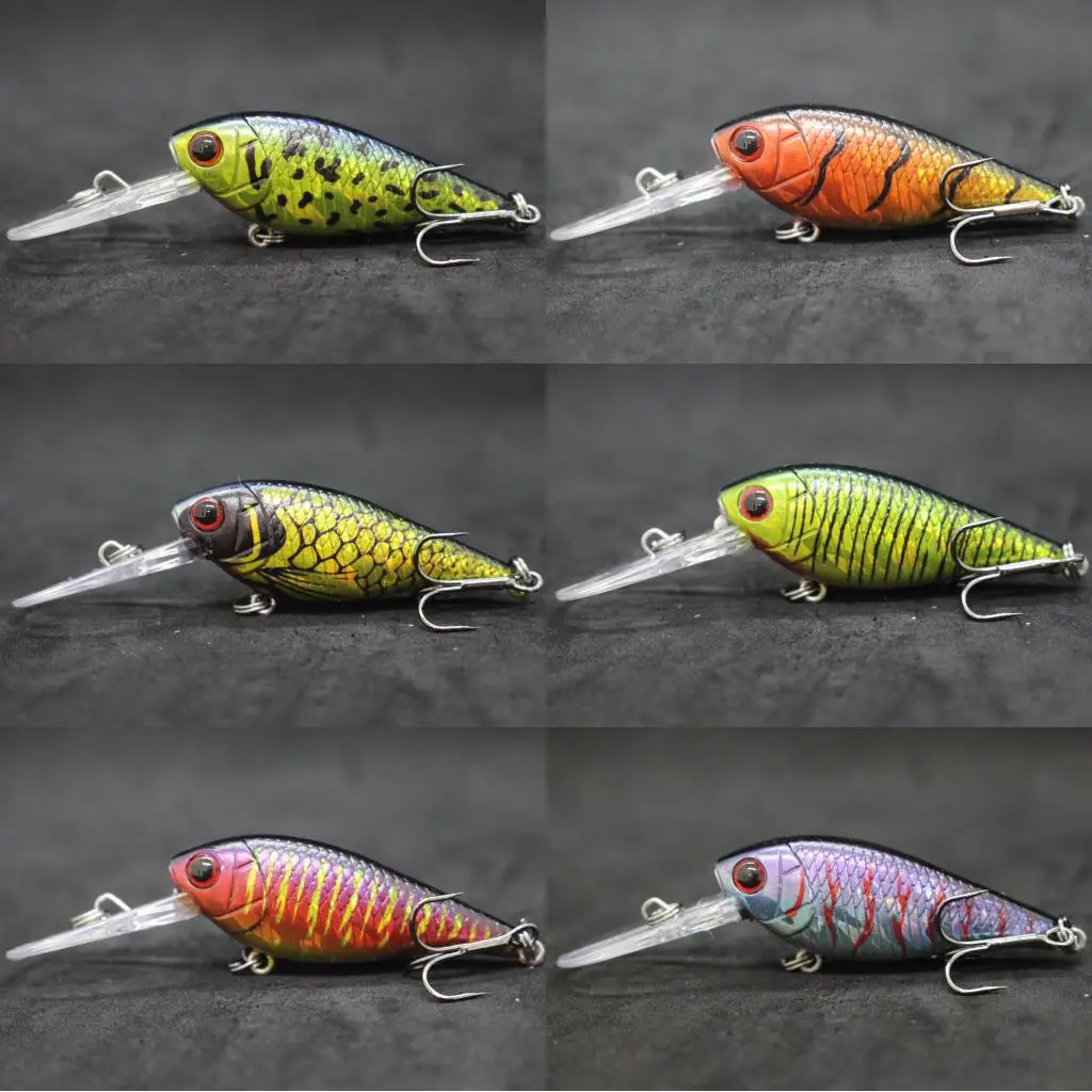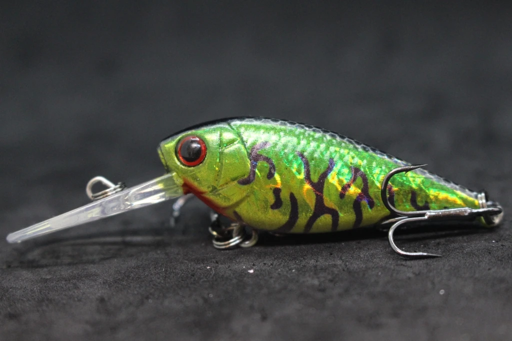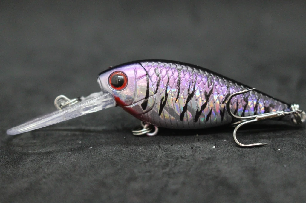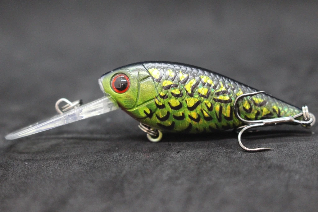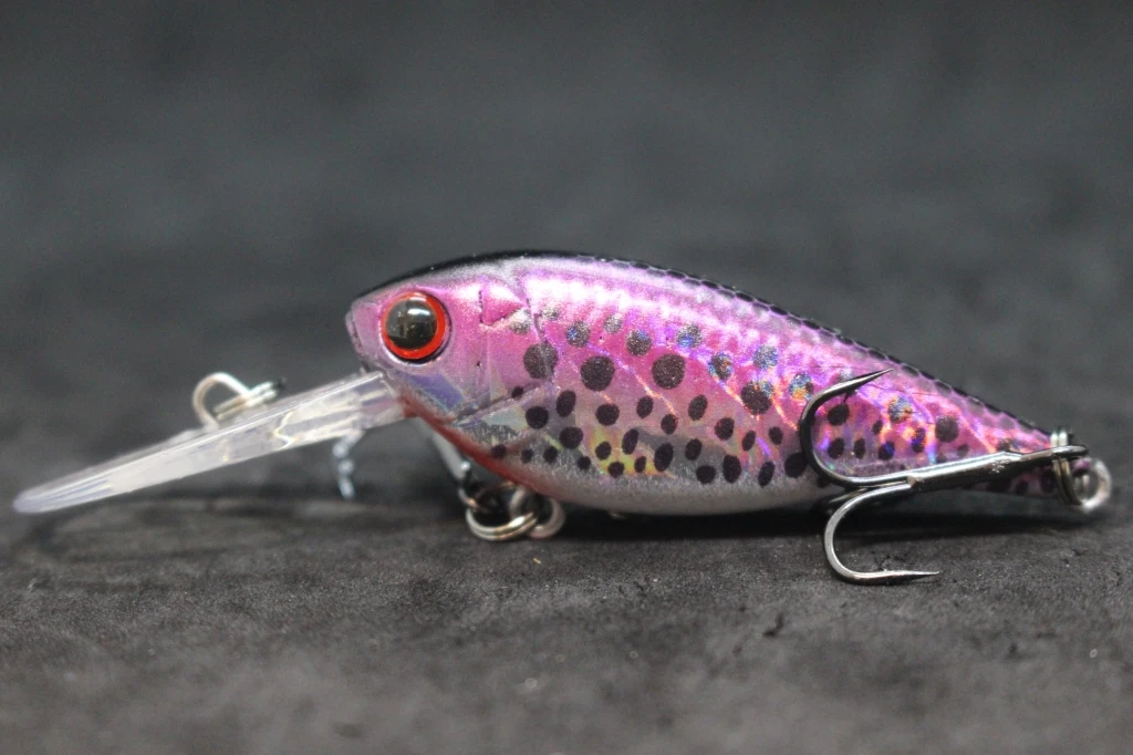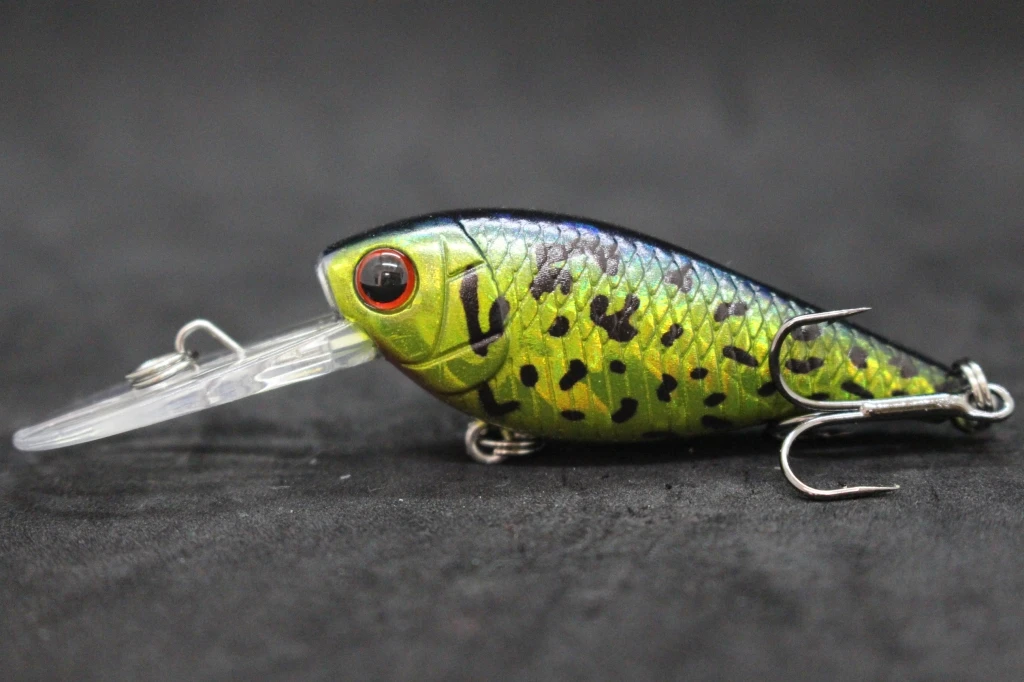 El señuelo de pesca mide 3 1/5 de pulgada (8,1 cm) de largo, pesa 1/4 oz (7,1 g) y tiene una profundidad de inmersión profunda.El tamaño del anzuelo recomendado para este señuelo es 6 y presenta una amplia acción de tambaleo cuando se recupera.