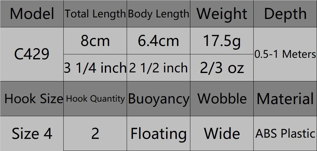 this fishing lure is a jerkbait designed for use in shallow waters. It has a body length of 2.5 inches (6.4 cm) and a total length of 8.3 cm, and weighs 17.5 g. The hook size is a 4, which is suitable for catching medium-sized fish.