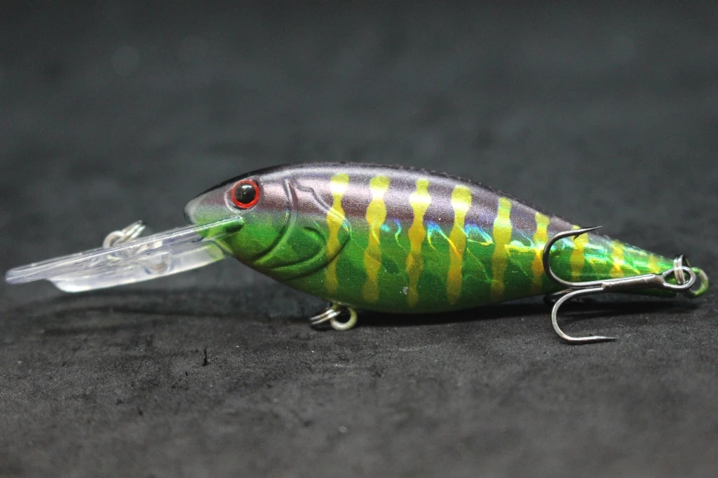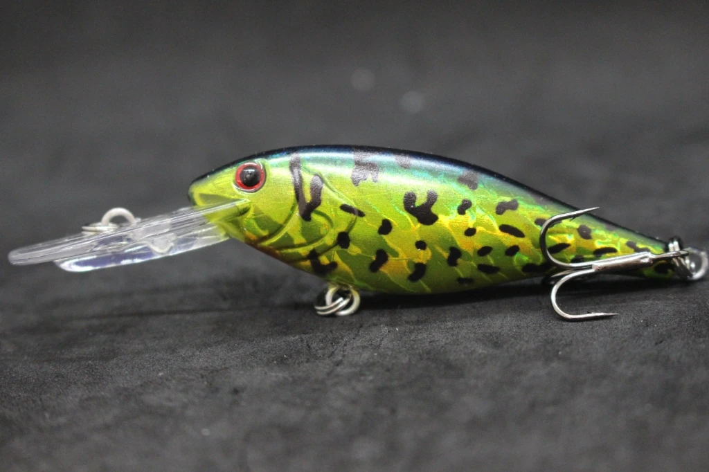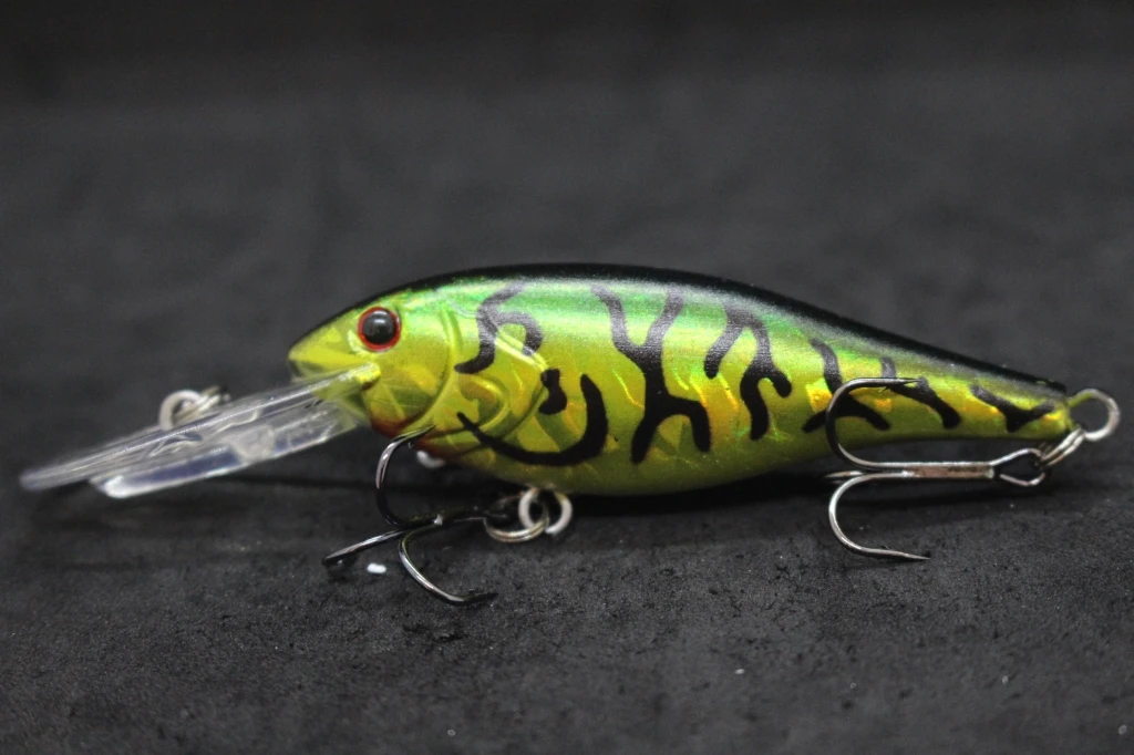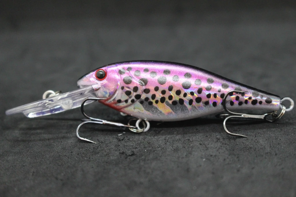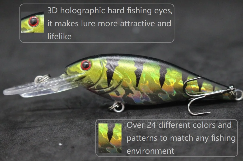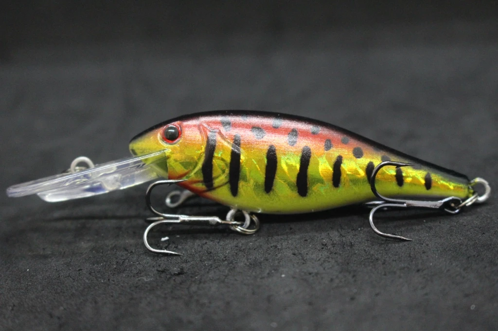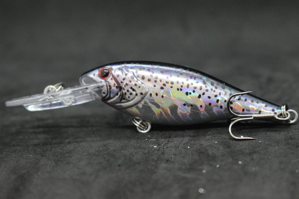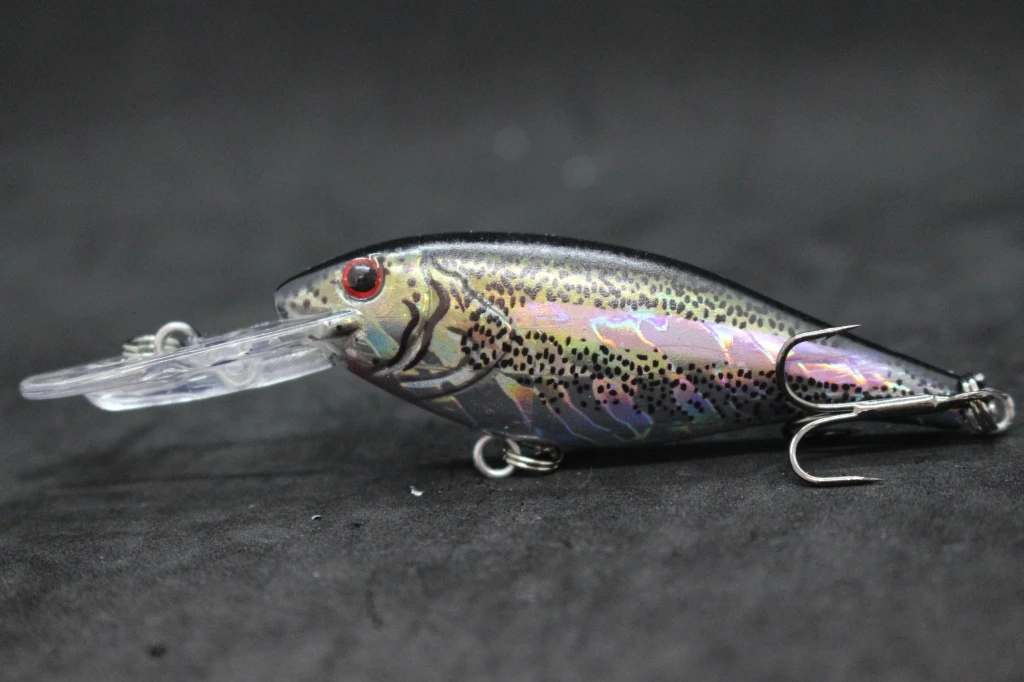 The lure is equipped with black nickel round bend treble hooks, which are sharp and reliable, and has an epoxy coating on the finish to protect it from wear and tear. Overall, this appears to be a well-designed and effective fishing lure for use in medium-depth waters.