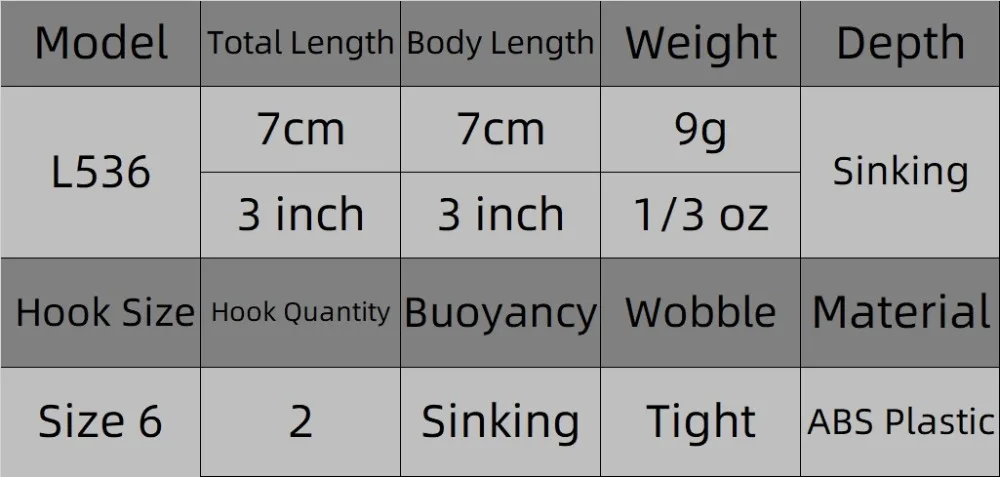 Introducing our premium fishing lure designed for serious anglers. With a length of 3 inches (7.6 cm) and weighing in at 1/3 oz (9.4 g), this sinking lure is perfect for catching a wide range of fish species.