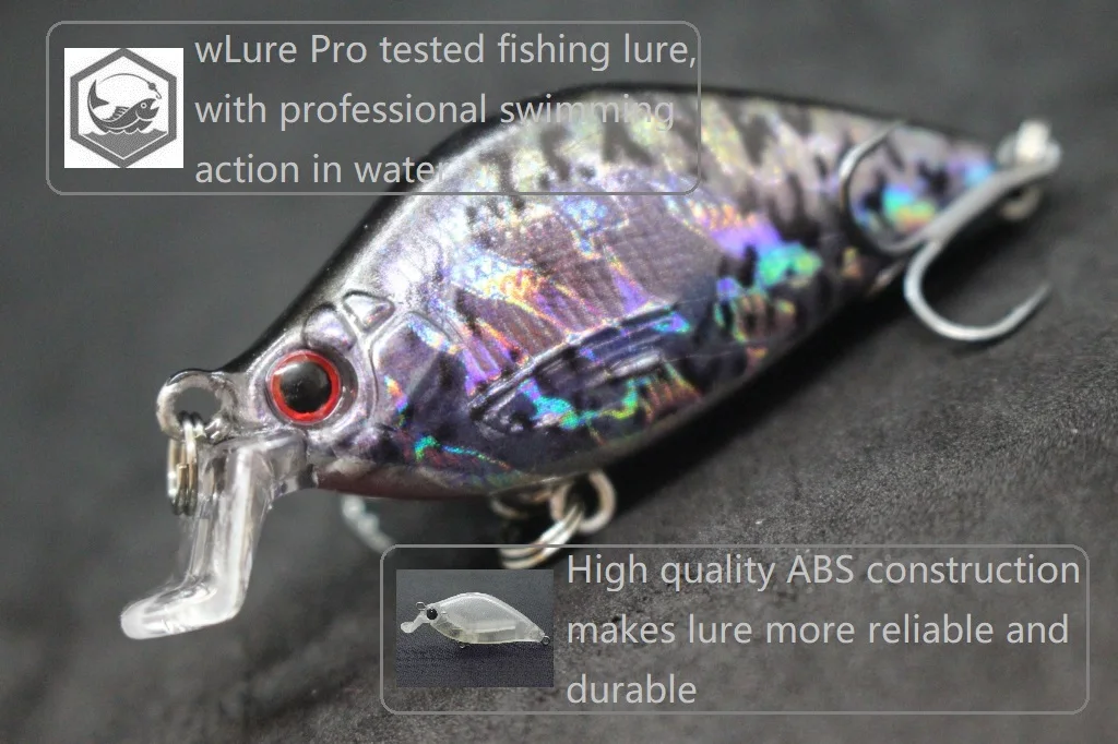 WLure-señuelo de pesca Wobbler, 6,4 cm, 8,6g, Crankbait, pintura de piel real, pequeño perfil ancho, forma de sábalo, cebo duro, anzuelo de alta calidad HC503