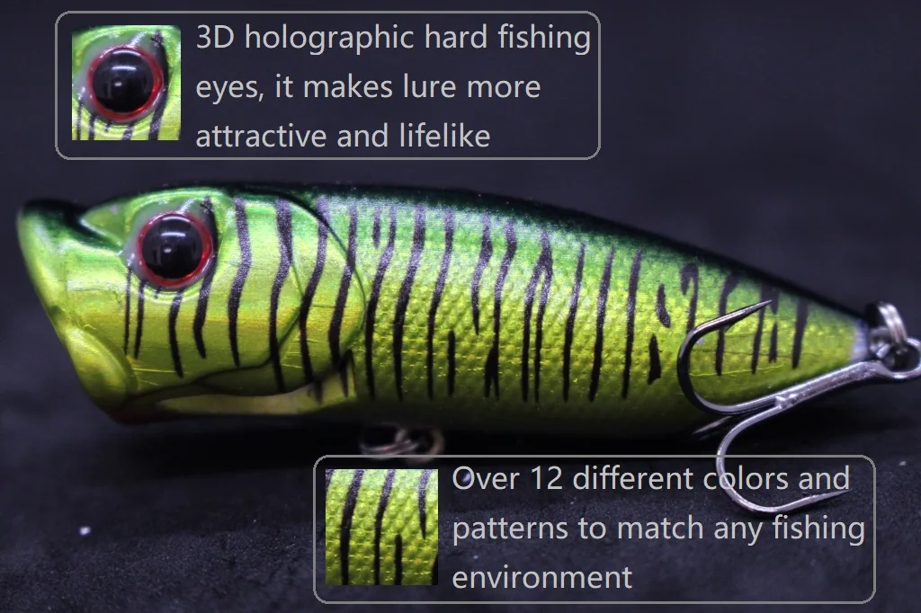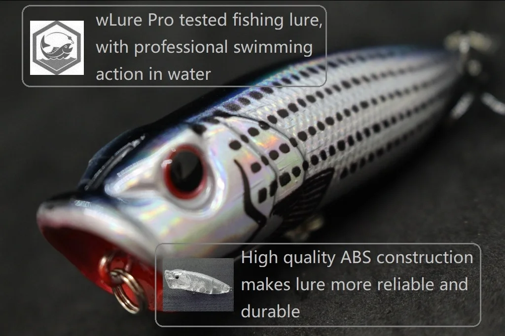 Crafted with high-quality ABS construction and coated with epoxy, this popper lure is built to last. The black nickel round bend treble hooks are razor-sharp and reliable, ensuring you never miss a catch.