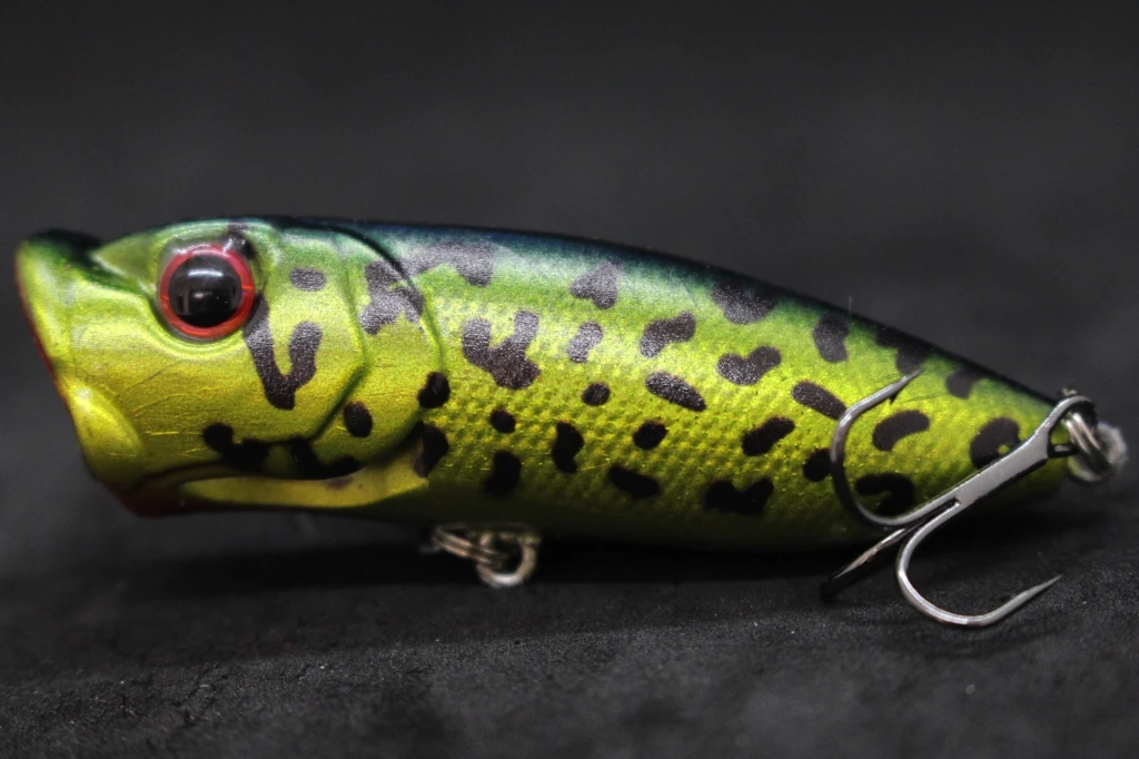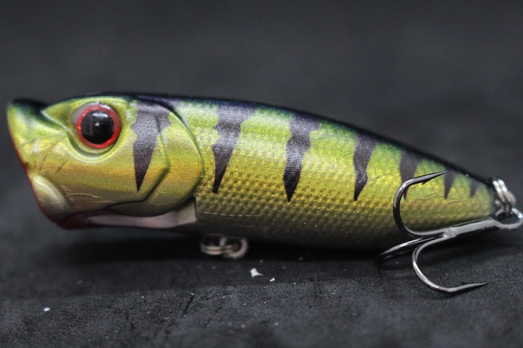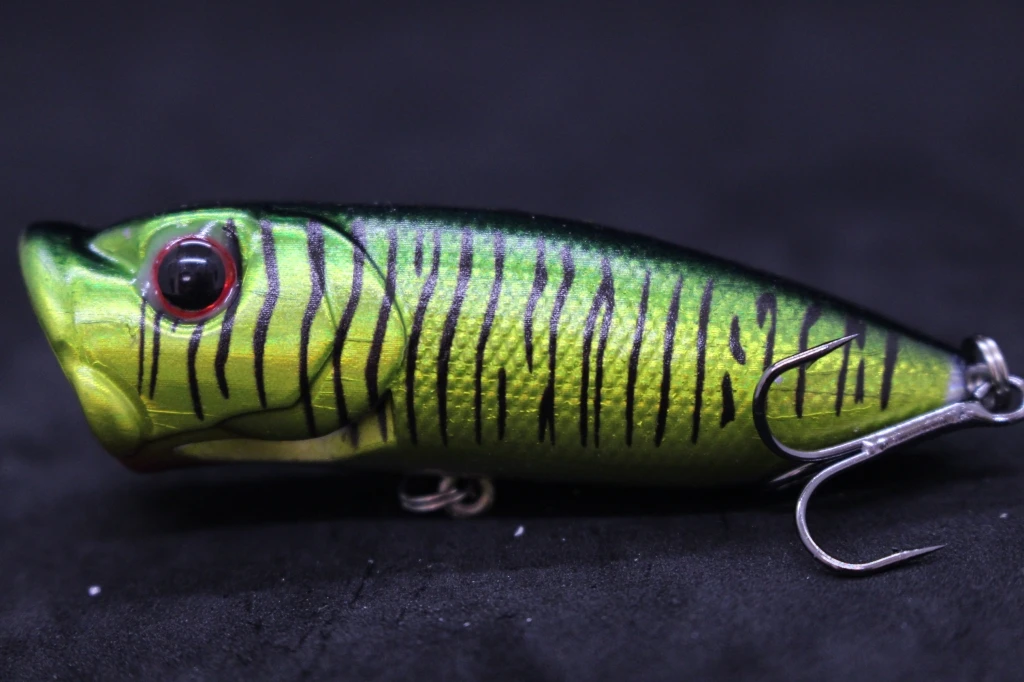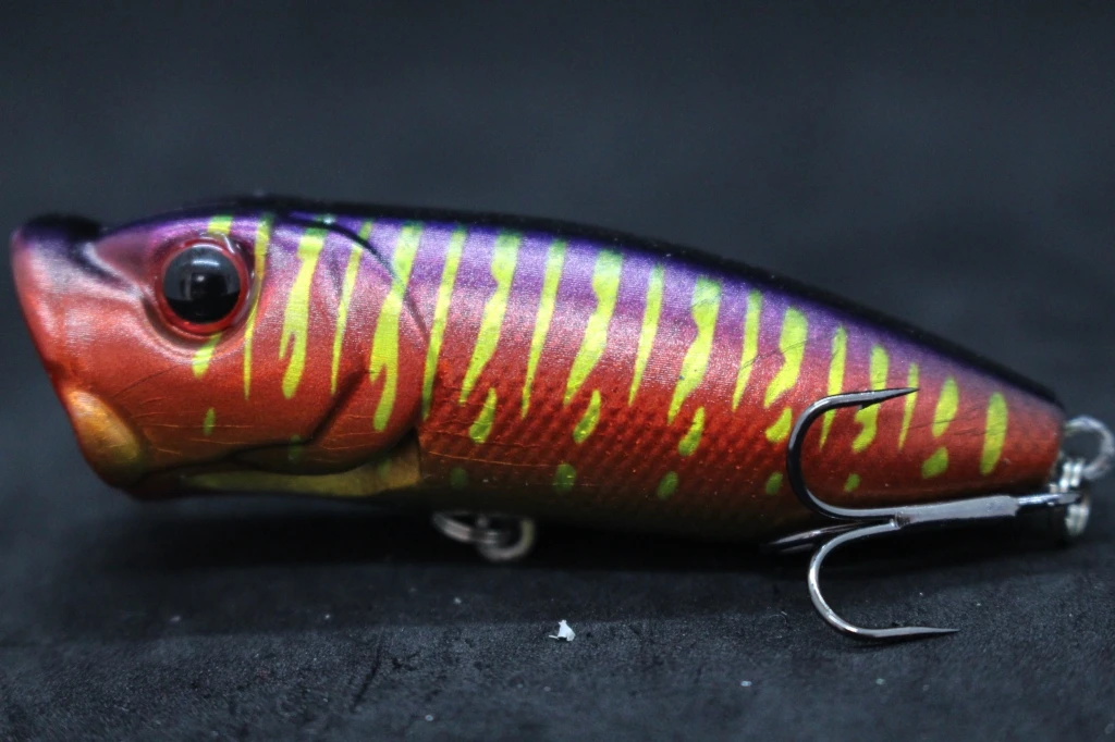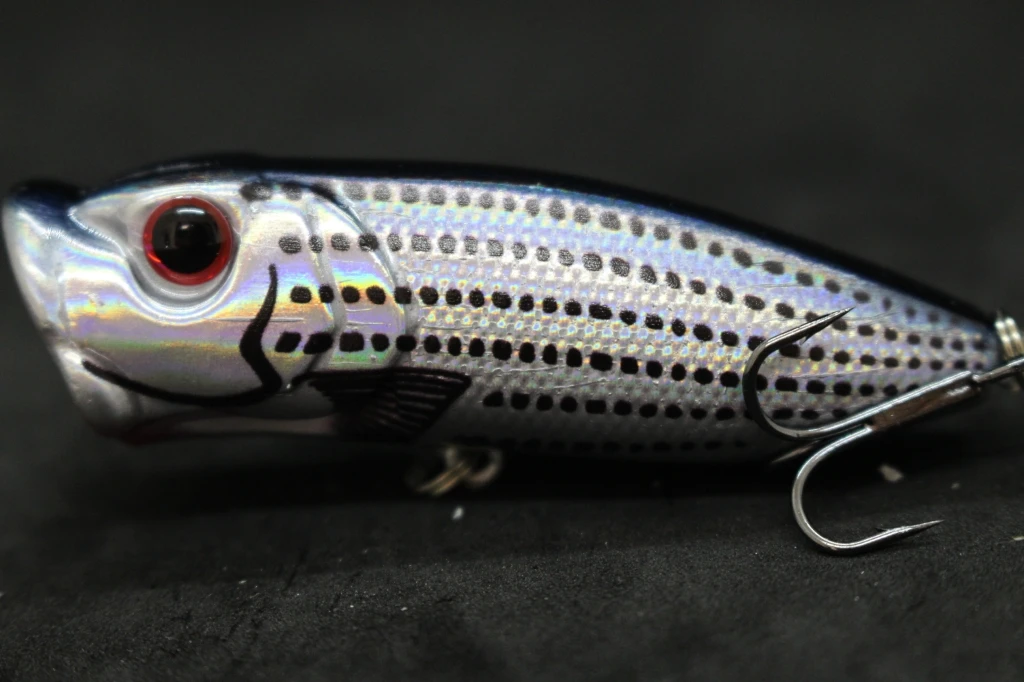 This popper lure boasts a large splash and loud rattle, making it irresistible to fish in the area. Its unique design and topwater action make it the perfect choice for targeting fish in a range of conditions.