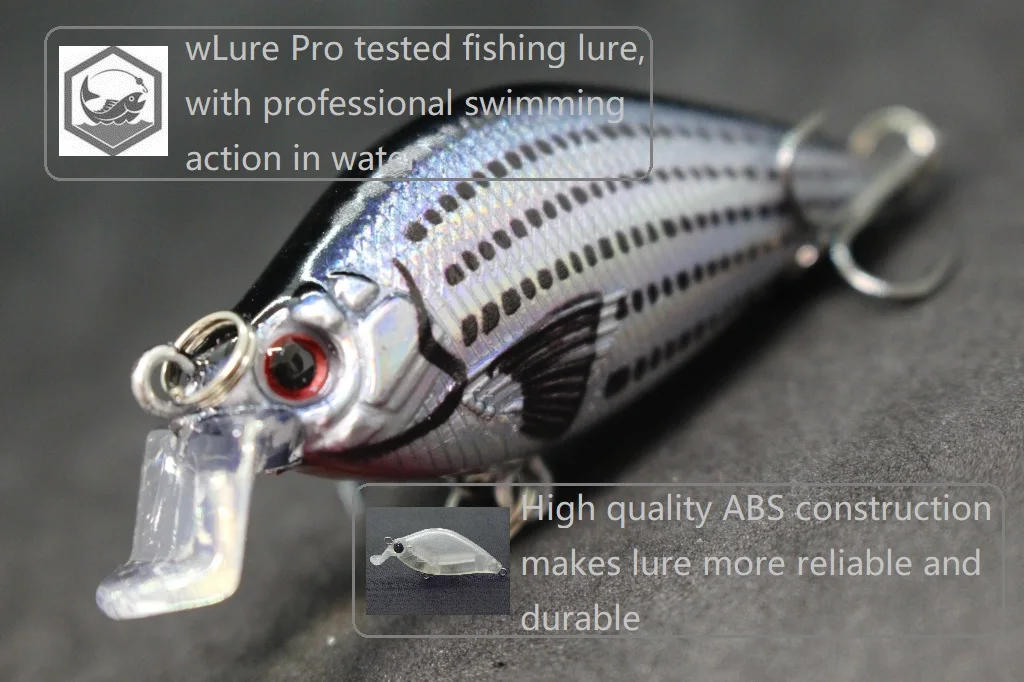 La estrecha acción de oscilación del señuelo imita el movimiento natural de natación de los pequeños peces cebo, lo que lo convierte en un objetivo atractivo para peces depredadores como lubina o trucha.El diseño de flotación lenta permite que el señuelo permanezca en la zona de ataque por más tiempo, aumentando las posibilidades de atraer peces.