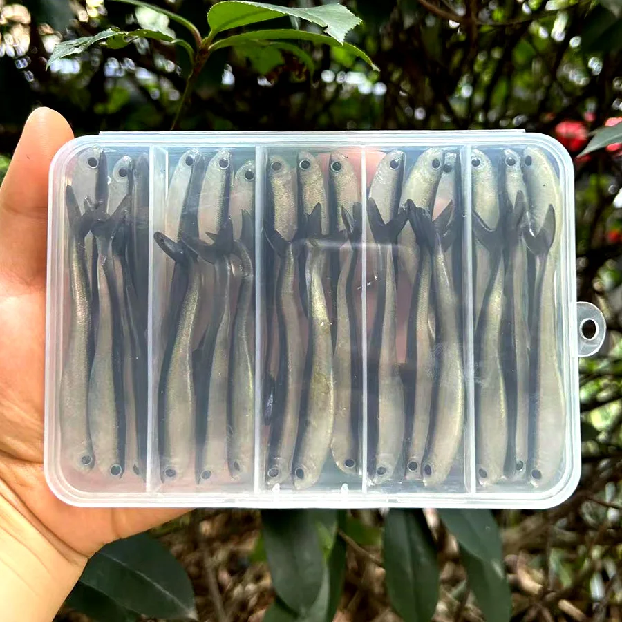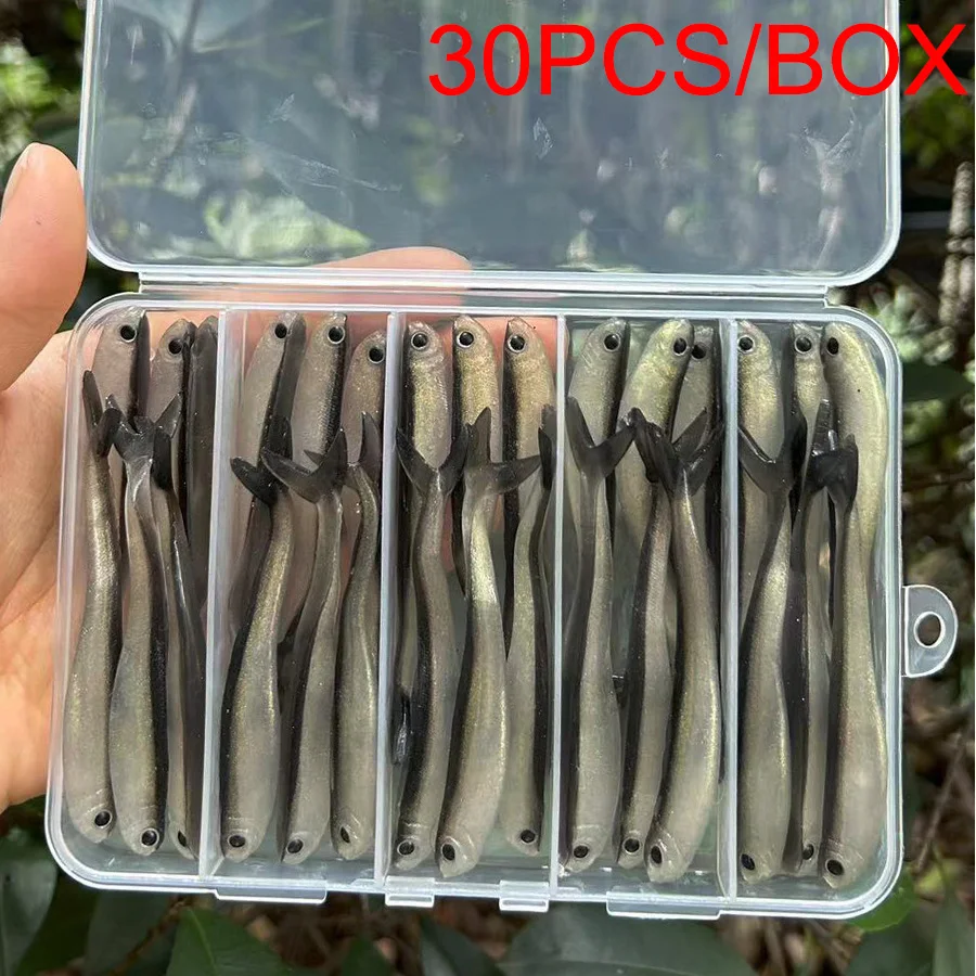 Wobbler delineador fácil para pesca de Lucio, señuelos de cola, cabeza de plantilla, cebo Artificial, gusanos de goma blanda, carpa, Tiro en gota, Swimbait, 30 unids/lote por caja