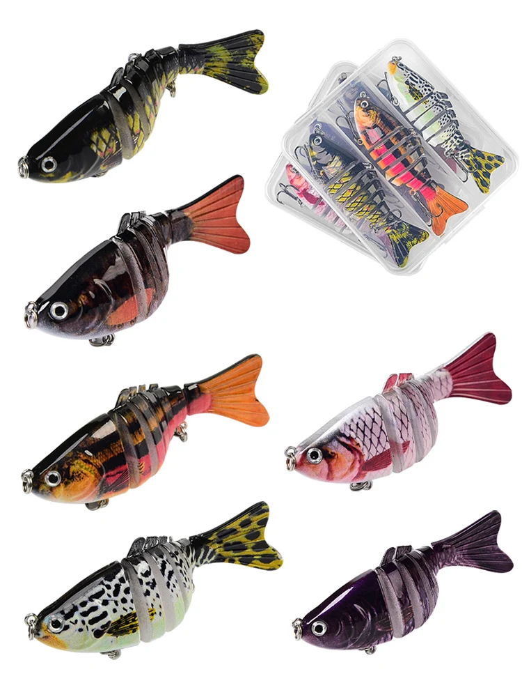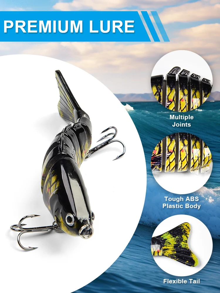 Señuelos realistas de 7 segmentos: diseñados con 7 Secciones de cuerpo segmentado, los Señuelos de Pesca pueden hundirse lentamente y ofrecer una acción de natación natural en forma de S a cualquier velocidad, lo que provocará picaduras más rápidas.