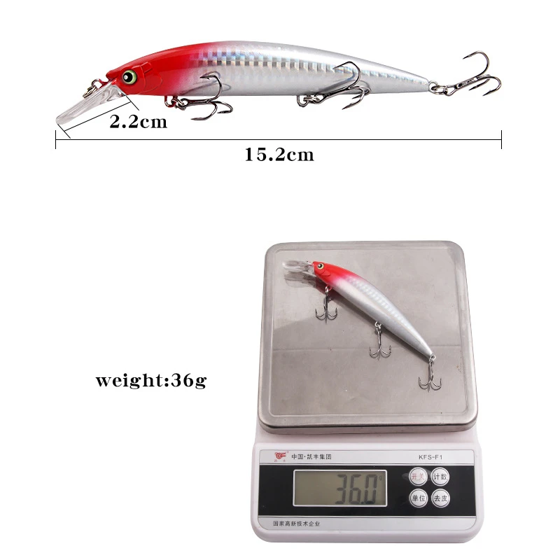 Wobbler-señuelo de Pesca de 15,2 cm y 36g, cebo duro flotante con anzuelos triples, para Pesca de carpa, 1 unidad