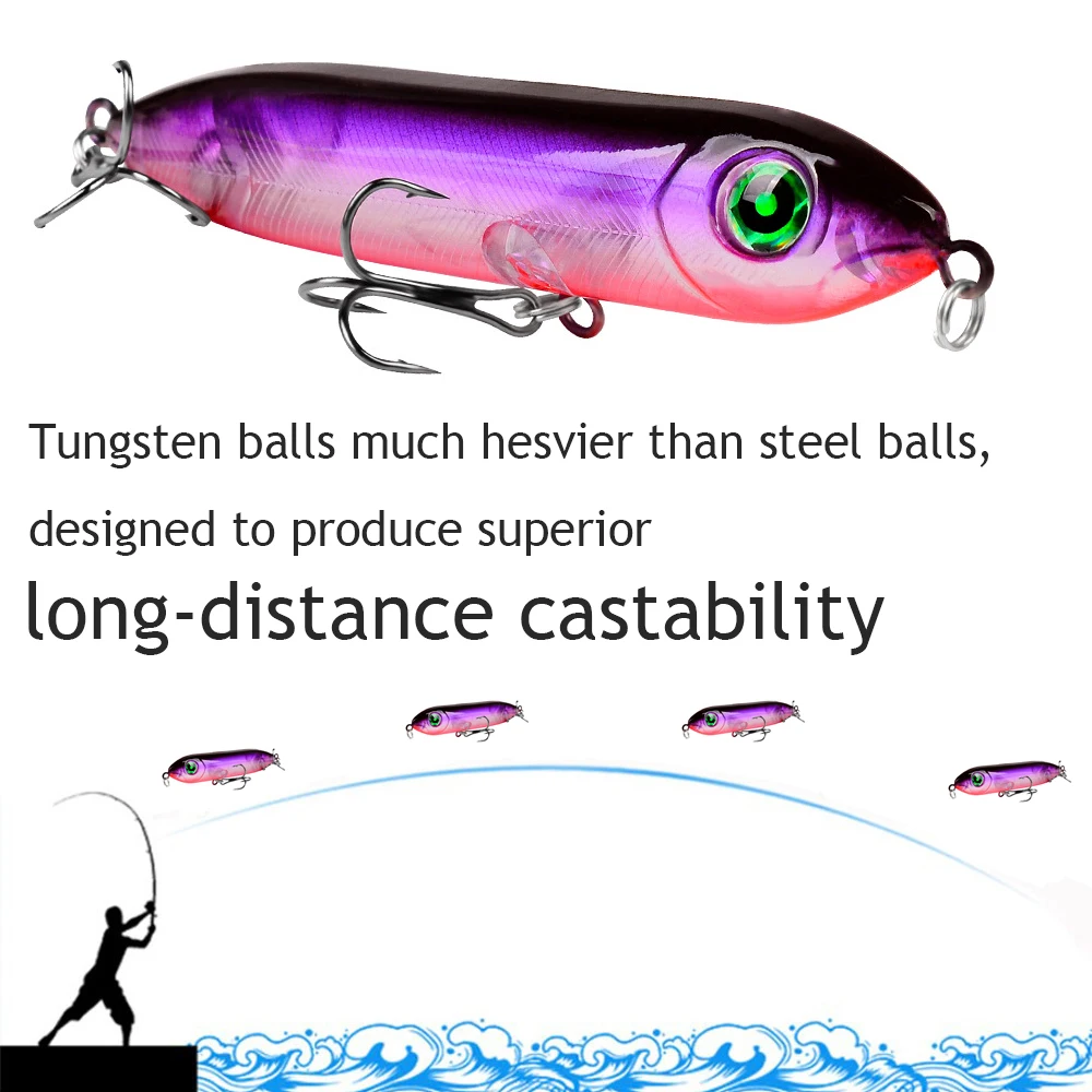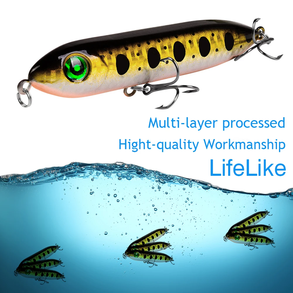 DISEÑO DE GANCHO: 2 anzuelos superafilados, especialmente importantes para striper escolar y otras especies de carga dura; los peces no golpean simplemente al Super Spook. Lo atacan