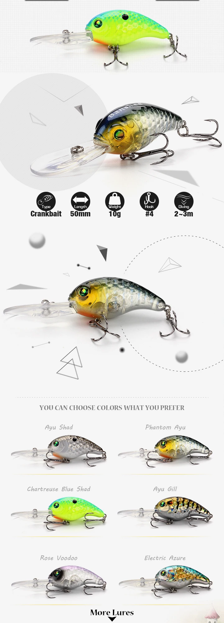 50mm 10g Wobblers For Pike Perch Floating Bass Fishing Lure Rattle Sound Round Bill Artificial Hard Bait Deep Diving Crankbaits