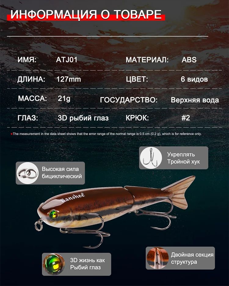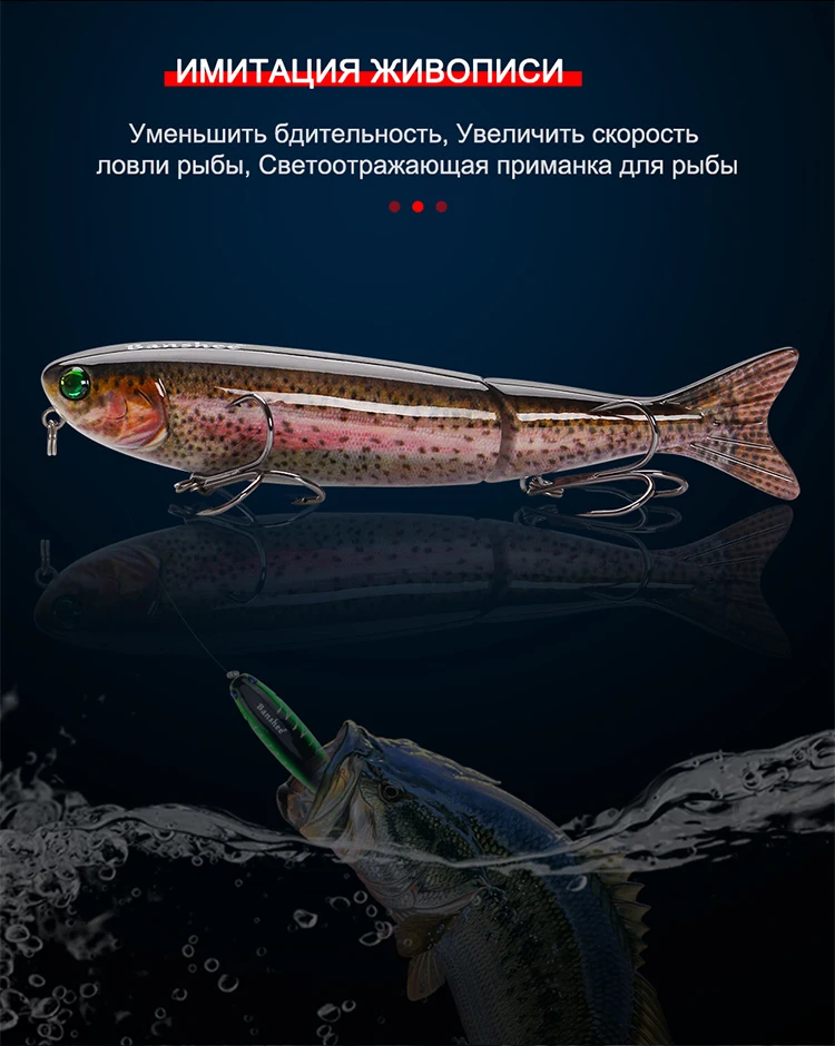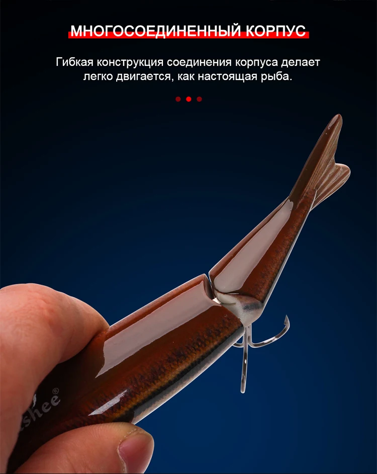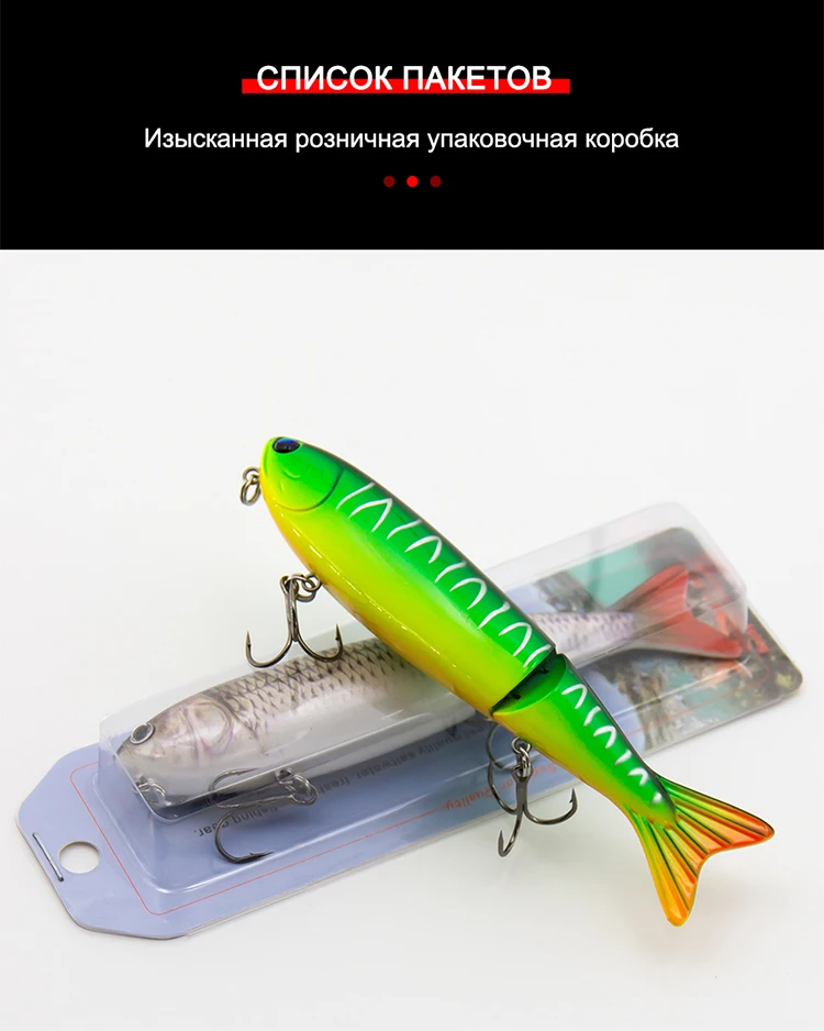 El diseño único articulado del señuelo imita el movimiento de lucha de un cebo vivo, atrayendo la atención de los peces que se alimentan.