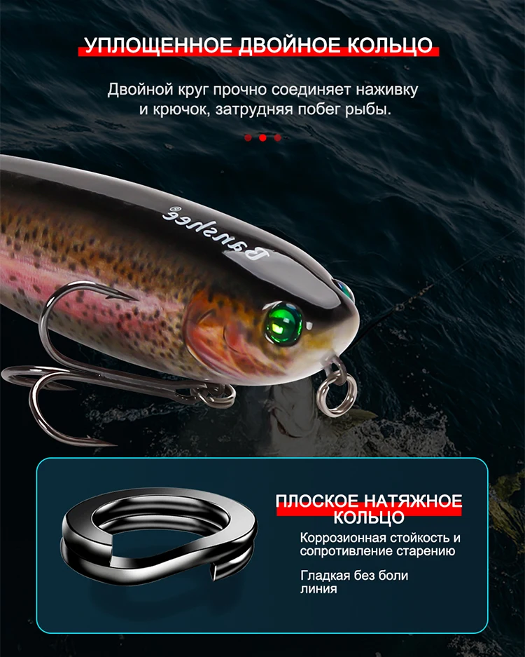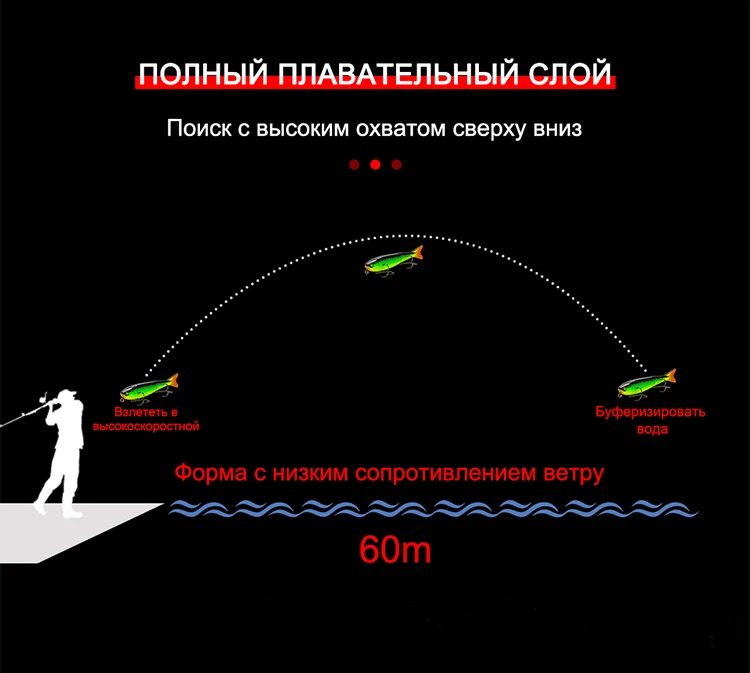 Como cebo de superficie, es particularmente efectivo para peces de alimentación de superficie como el lucio.