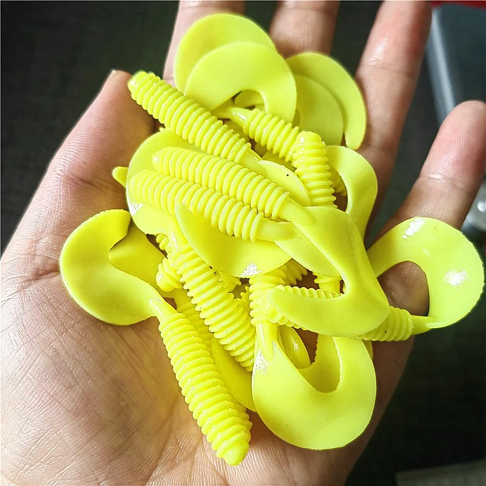 Wobblers-cebos blandos de cola para pesca de lubina, anzuelos de gusano, 53mm, 1g, 20 piezas