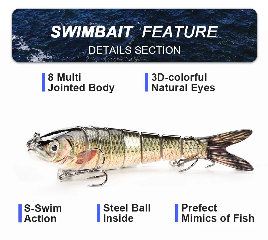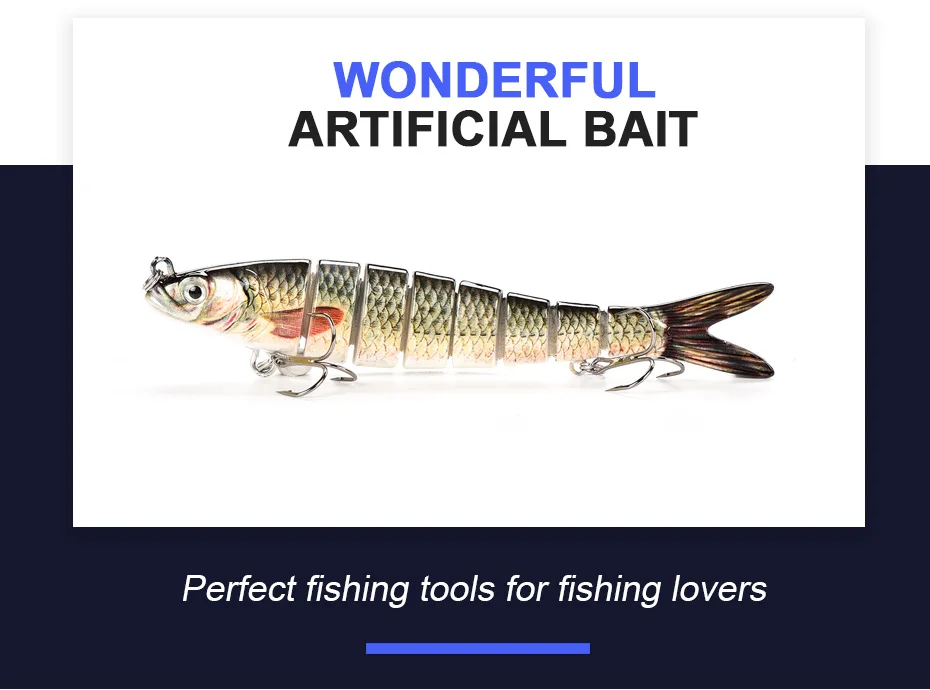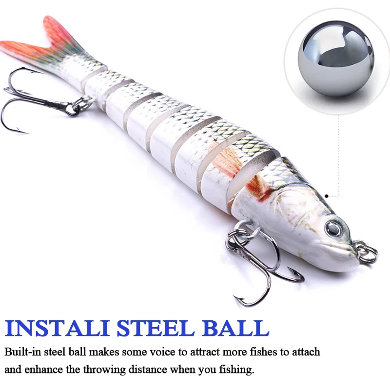 Tipo de señuelo: 8-segement cebos de pesca artificiales multiarticulados con 2 anzuelos triples, movimiento de natación en S a cualquier velocidad