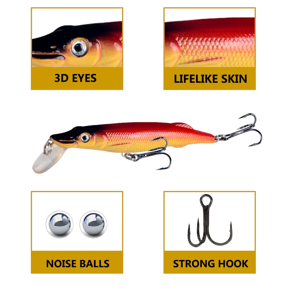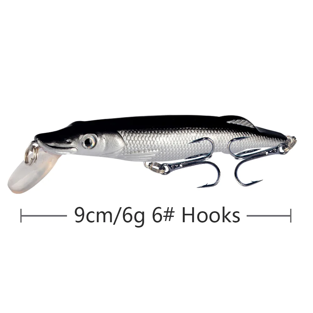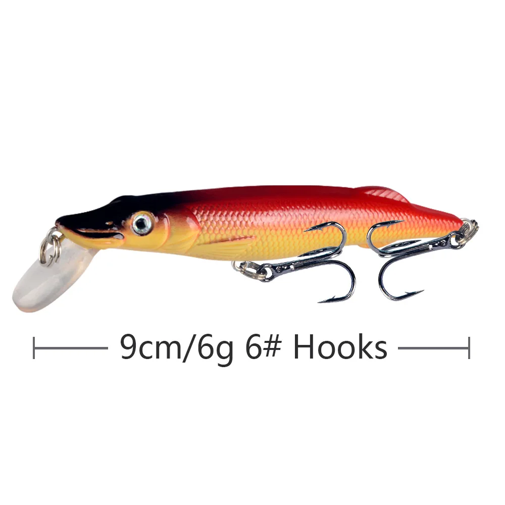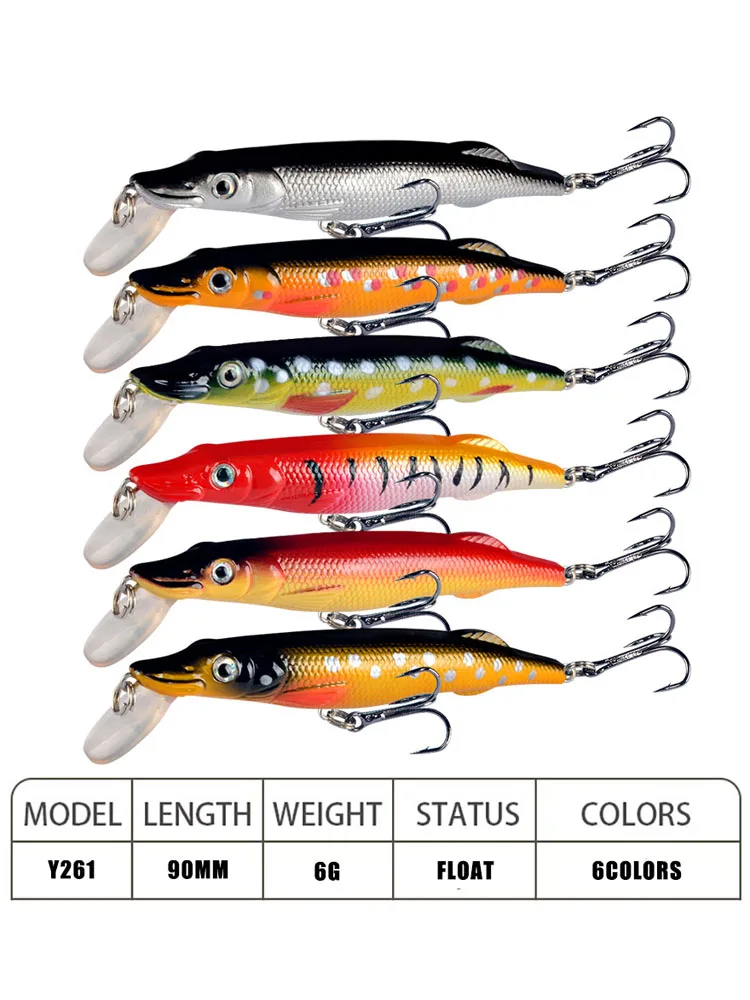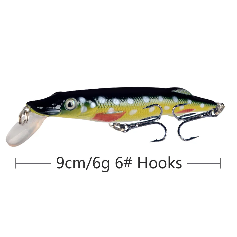 Wobblers Jerkbait Señuelos de Pesca, 6 colores, 9cm, 6g, cebo duro, Minnow, manivela, lubina, aparejos de agua dulce y salada, señuelo de hundimiento Mini