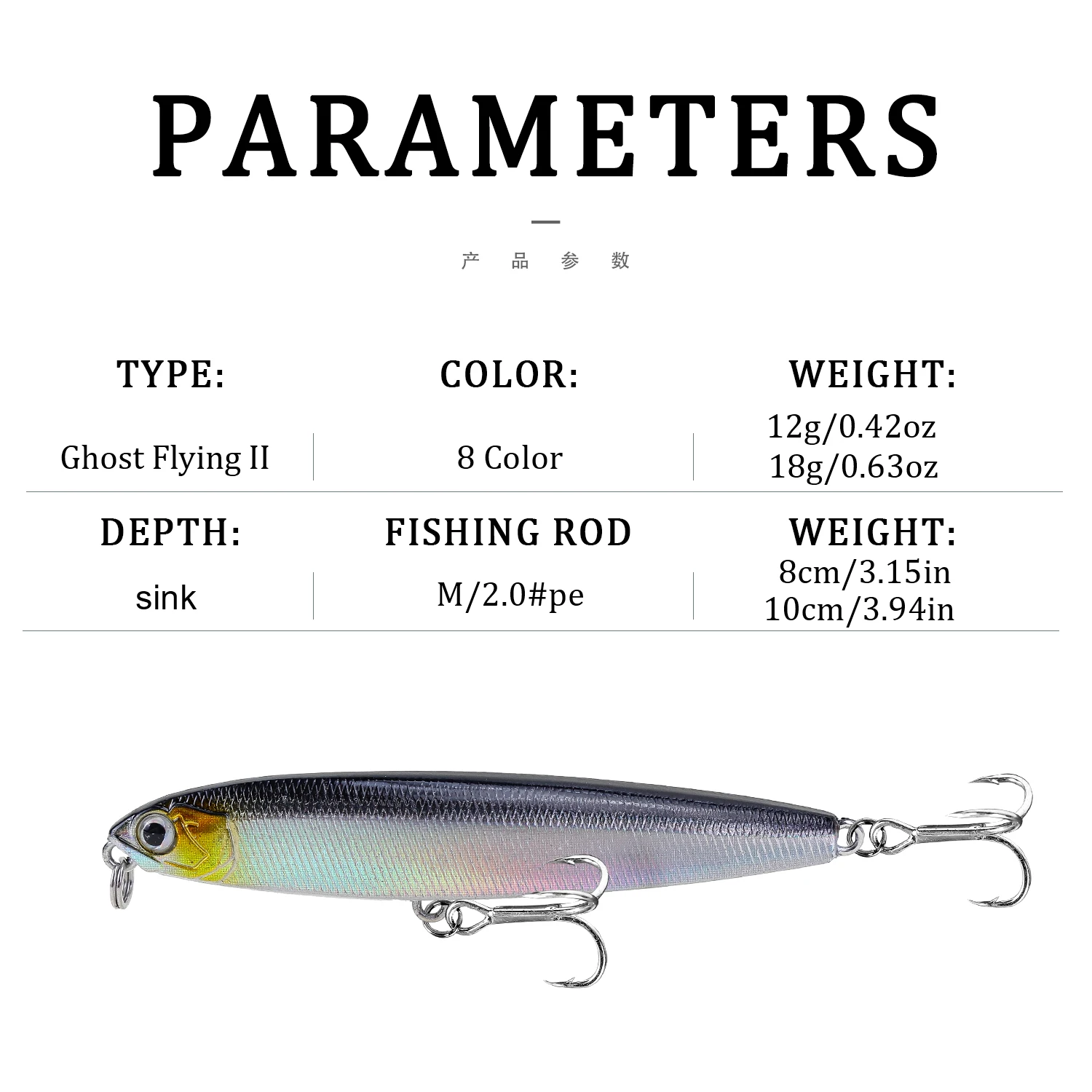 Wobblers de lápiz de hundimiento, señuelo de Pesca Artificial de lubina, cebo de pececillo duro, aparejos de Pesca Jigging de alta calidad, 8cm, 13-18g, 1 pieza