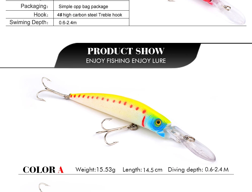 14,5 cm 15,53G Wobblers de pesca 6 colores Swimbait Crankbait señuelo de pesca cebo con #4 ganchos