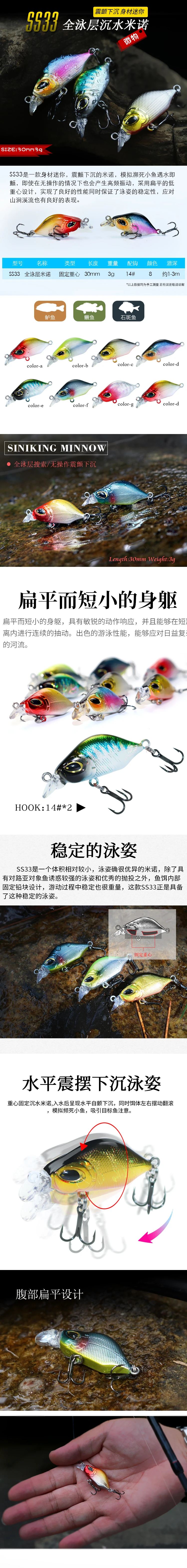 Wobblers-Señuelos de Pesca de 3cm y 3,0g, 1 piezas, cebo duro que se hunde, VIB, Minnow, Crank, lubina, 14 #, VMC, anzuelos, aparejos