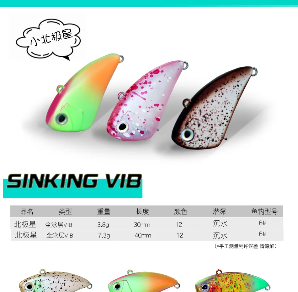 Wobblers de vibración de 3,8g, 30mm, 7,3g, 40mm, cebos artificiales duros que se hunden, señuelos VIB para aparejos de cebo de pesca