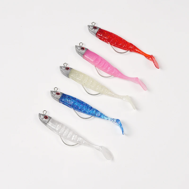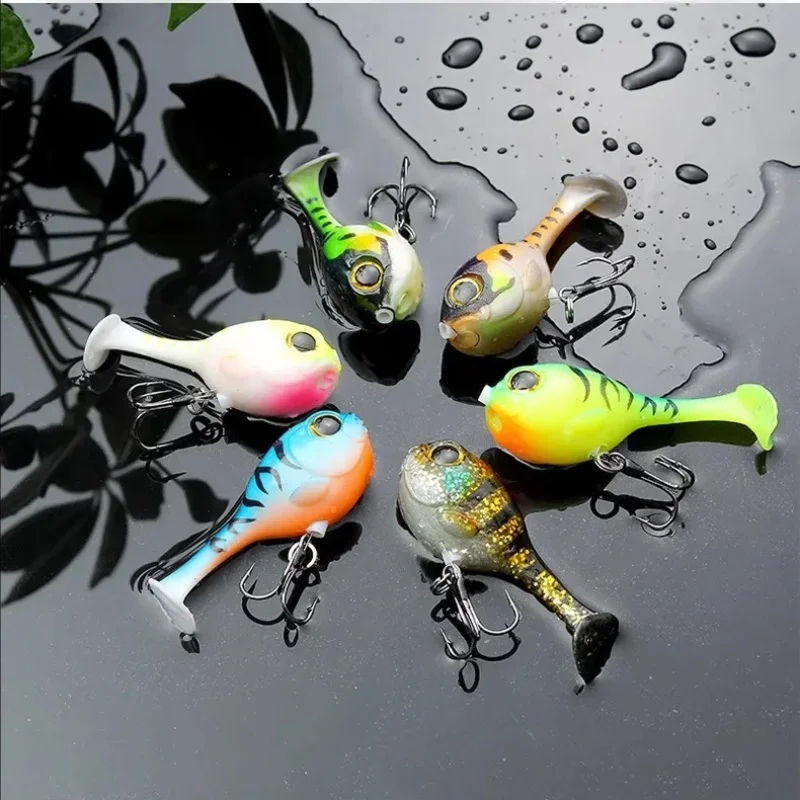 Wondersee 60mm 9,7g 3D cebos blandos tipo delfín con anzuelos triples cola en T ojos de pez 3D señuelo de pesca cebo elástico vivo al por mayor