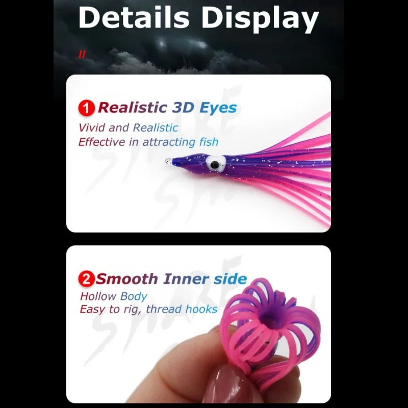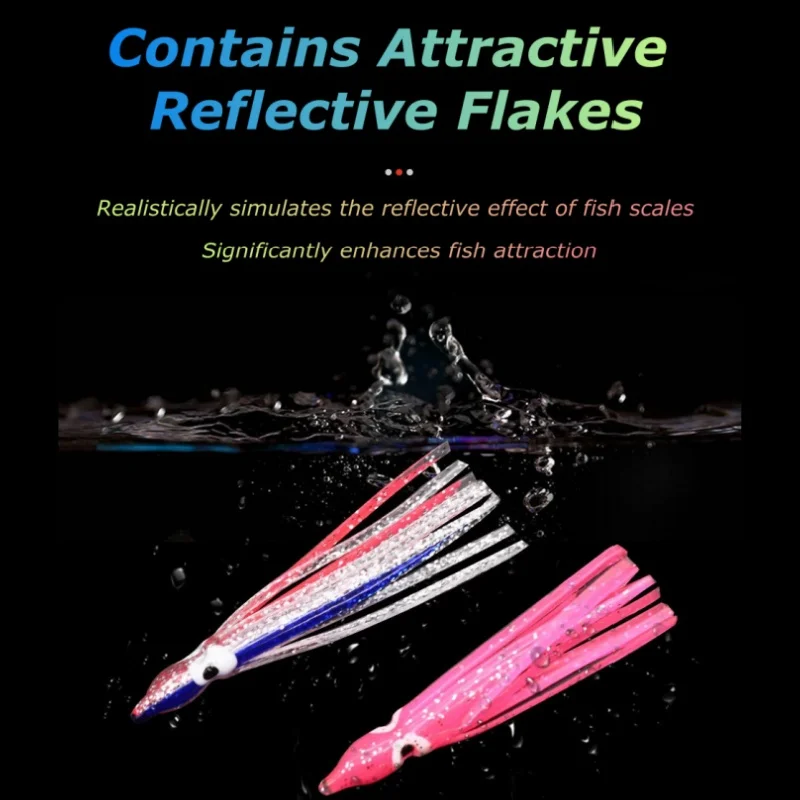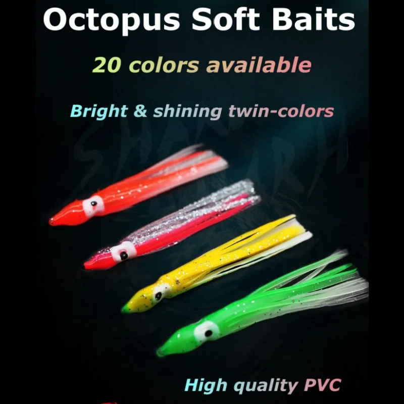Señuelos blandos con falda de pulpo, cebo para calamar, 5 unidades por paquete, 50 mm, 70 mm, 100 mm, 120 mm