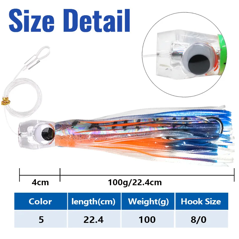 Wondersee-señuelo de curricán de 230mm y 100g, cebo de calamar acrílico biomoluminiscente para pesca en aguas profundas, agua salada para atum Marlin Wahoo