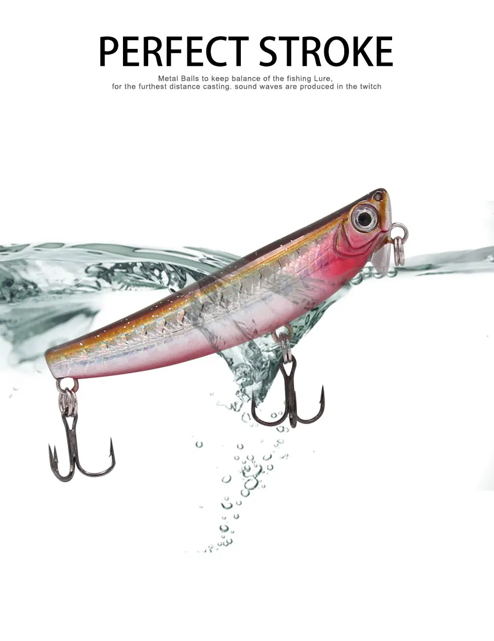 5.Bolas de metal: para mantener el equilibrio del señuelo de pesca, para el lanzamiento a distancia más lejana,Las ondas sonoras se producen en el twitch.