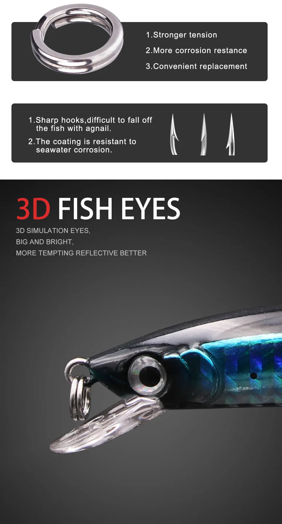 1. Ojos de pez 3D: ojos de simulación 3D, grandes y brillantes, más tentadores, reflectantes mejores.