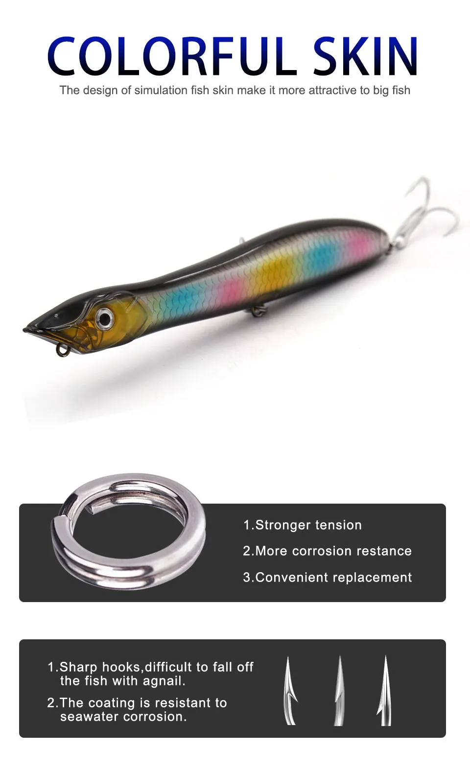 2.Ganchos Mustad: equipados con 2 ganchos Mustad. Anticorrosión, potencia más fuerte, duradero, agua de mar de agua dulce universal.