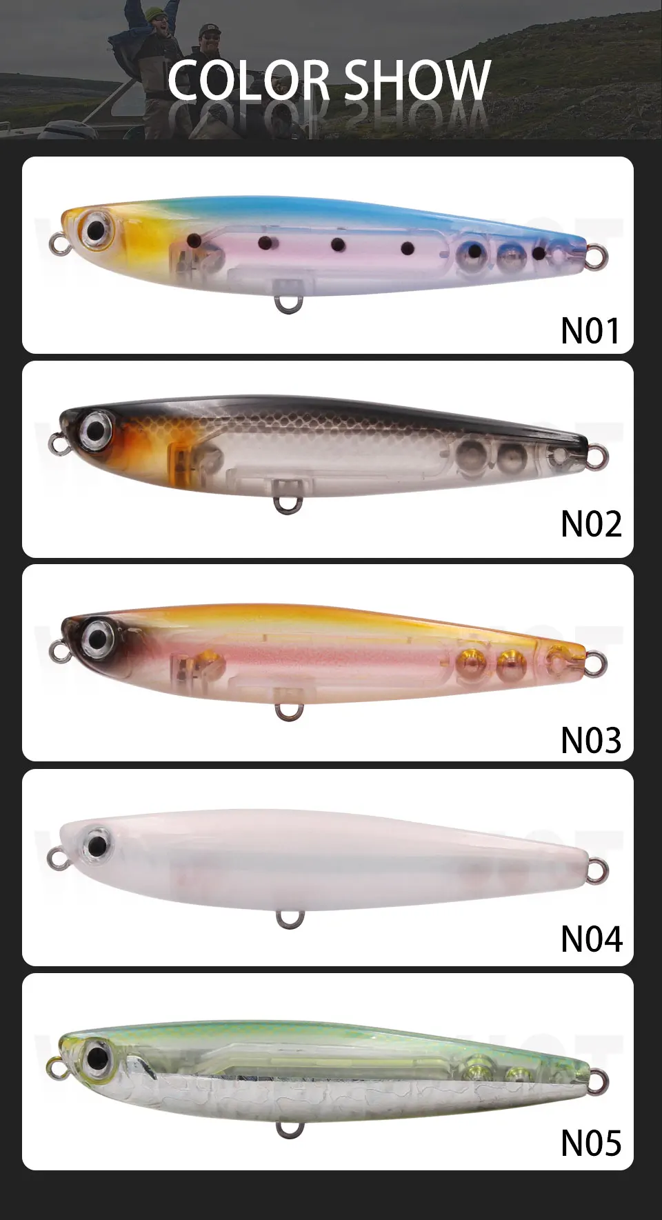 6.Embalaje del producto: cada cebo se empaqueta en una bonita caja de PVC al por menor.