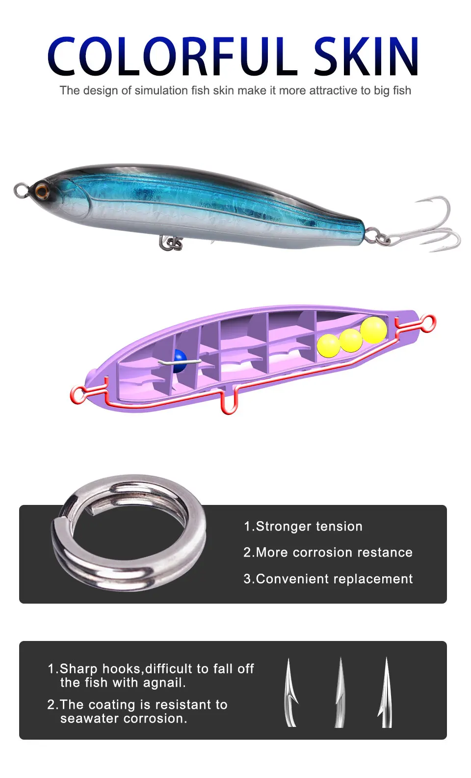 2. Ganchos Mustad: Equipado con 2 Ganchos Mustad DE LA piezas. Anticorrosión, potencia más fuerte, duradero, agua de mar de agua dulce universal.