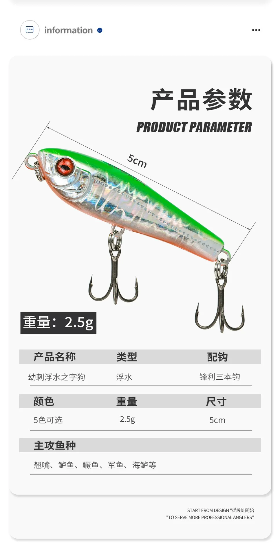 Wondershot Sparrow-señuelo duro flotante para pesca, cebo de lubina, 50mm, 2,5g