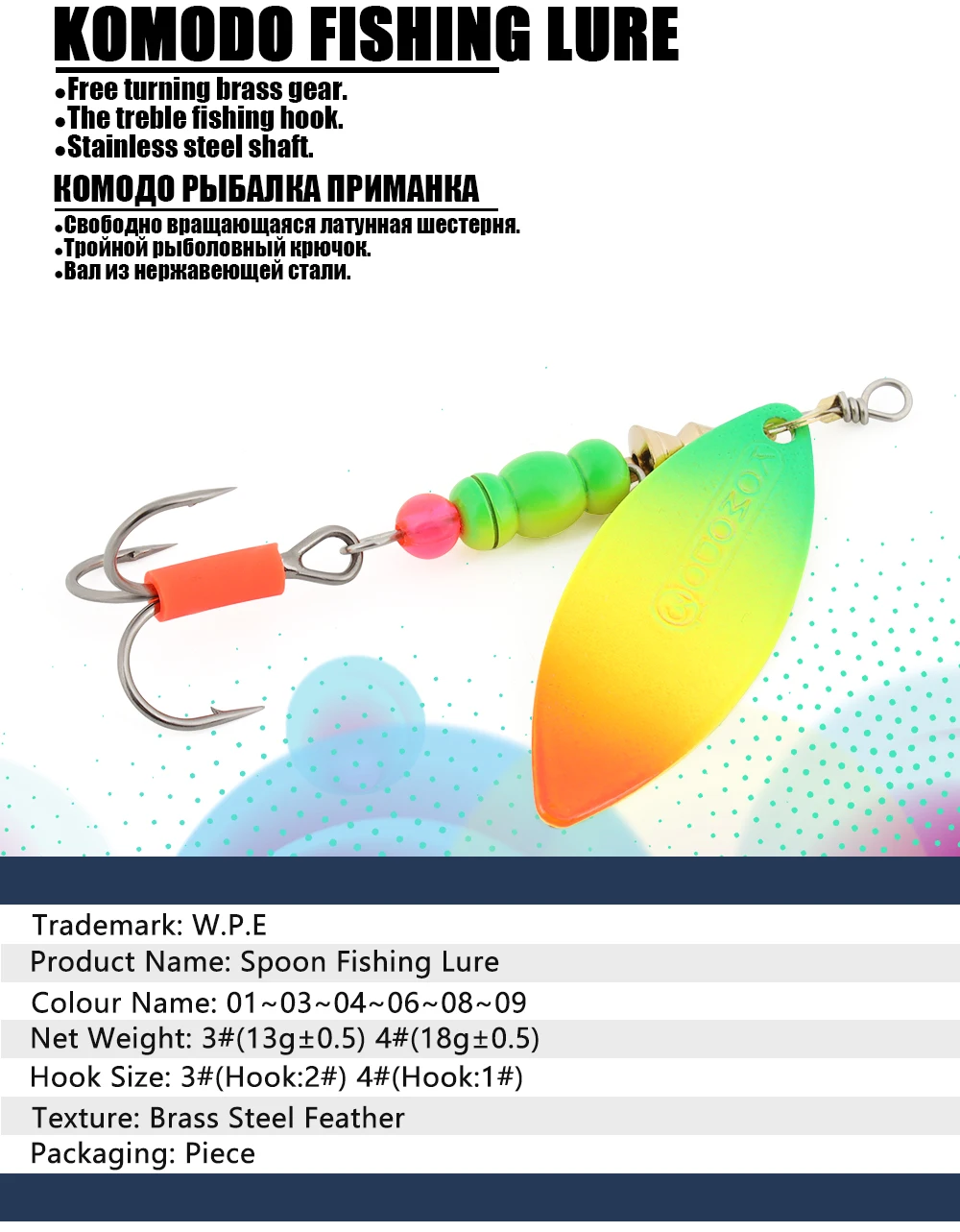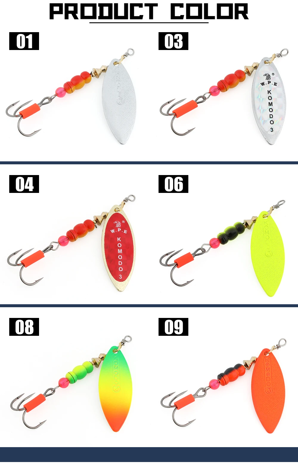 W.P.E 1 pieza señuelo giratorio 3 # /4 # Señuelo de Pesca con cuchara de 13g/18g, cebos de Pesca, Lucio, cebo de natación, aparejos de Pesca, Pesca de Metal de latón