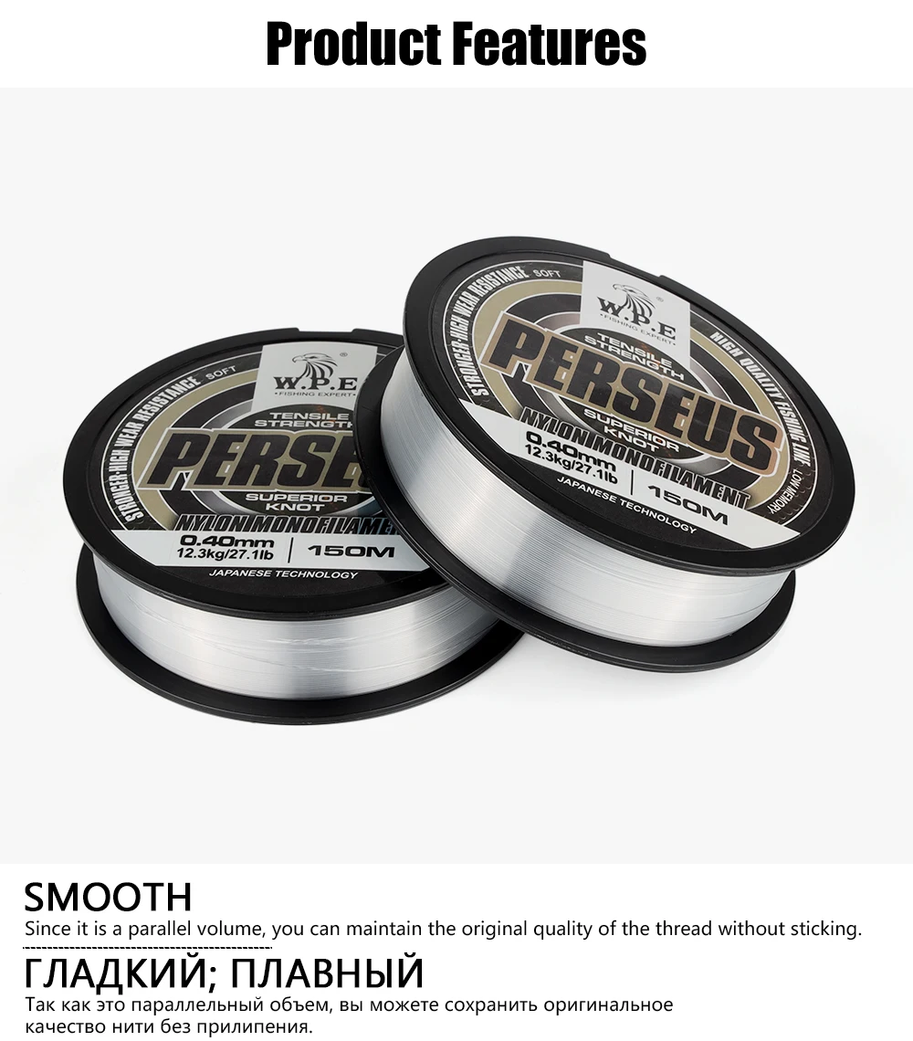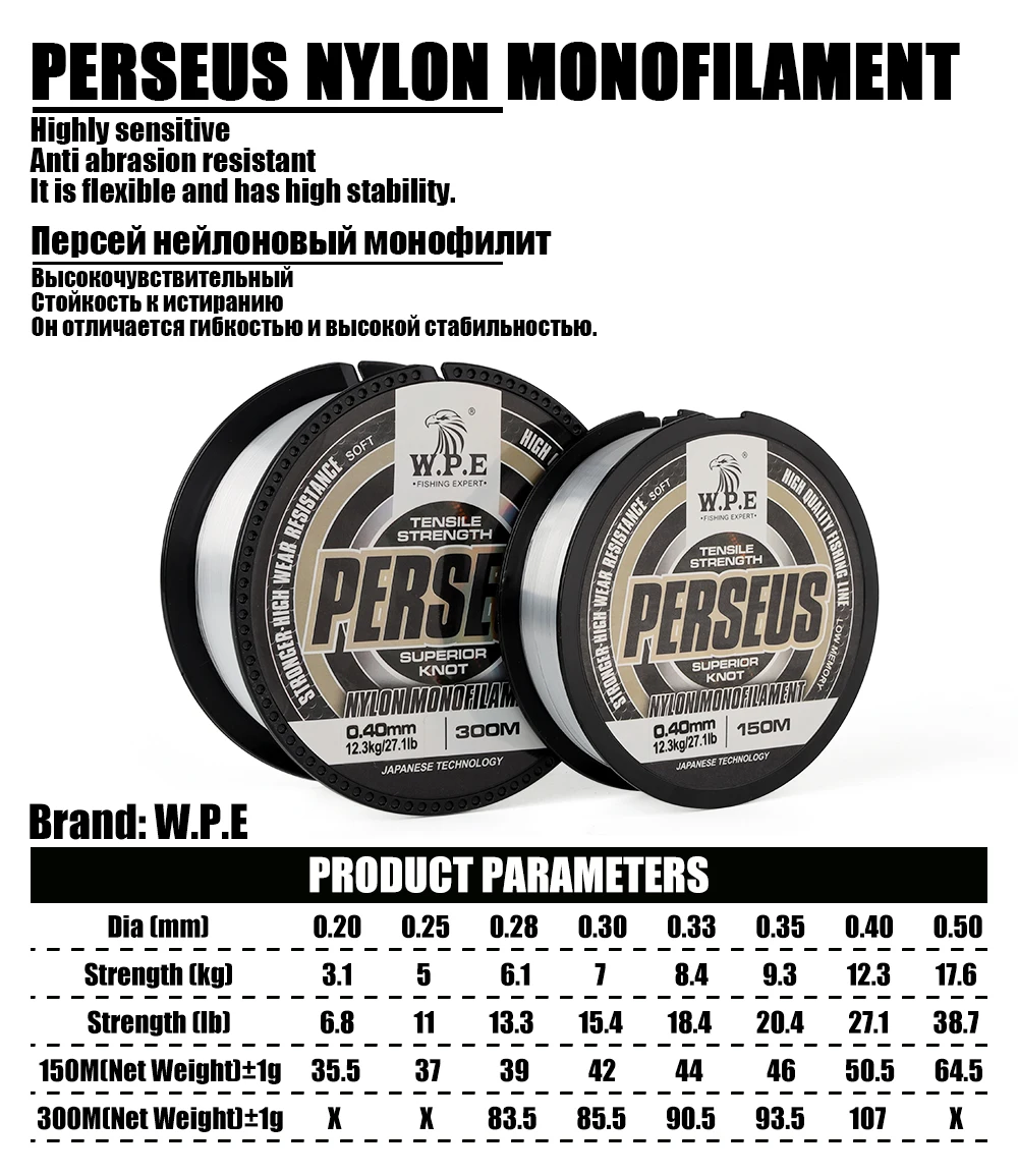W.P.E 300m Nylon Fishing Line 0.28mm-0.40mm 13.3lb-27.1lb Monofilament Main Line Level Sinking Fishing Line Bass carp Fishing