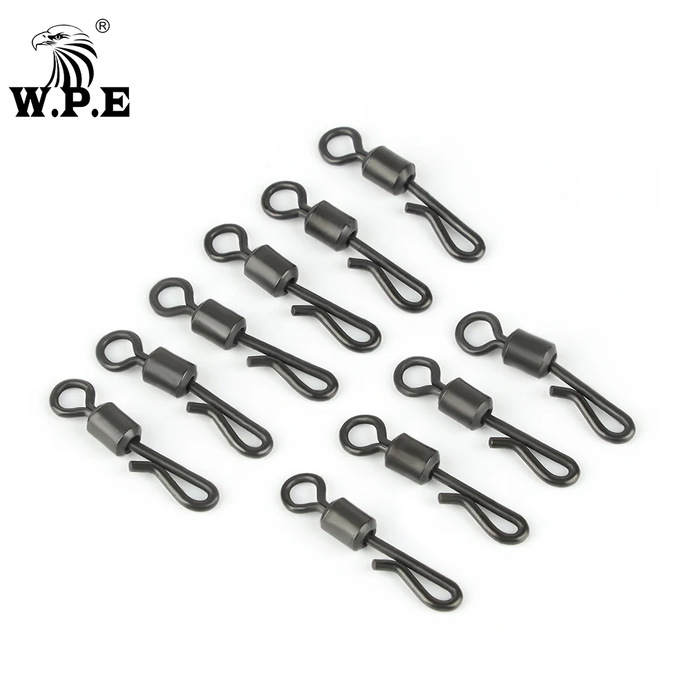 W.P.E-accesorios de Pesca de carpa, accesorio giratorio de cambio rápido de cuerpo largo en forma de Q, color negro mate, 1 juego/30 Uds.