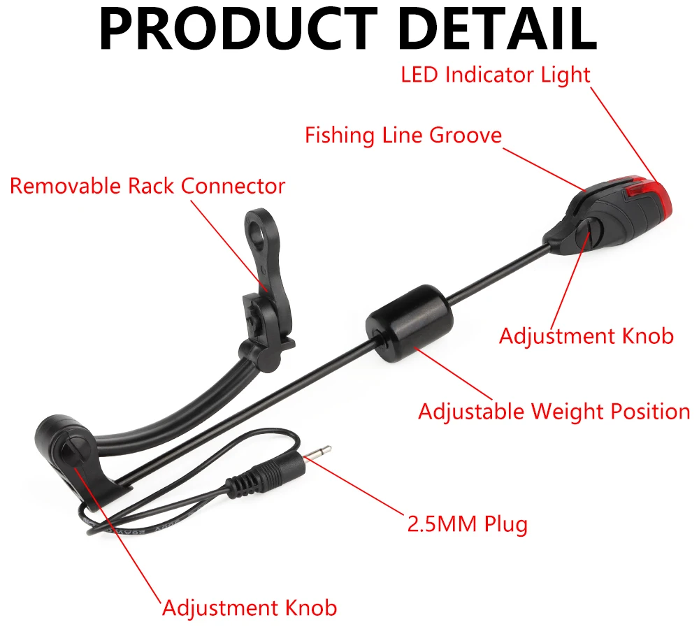 W.P.E-Alarma de cebo de pesca de carpa, Swinger iluminado Multicolor, indicador de mordedura LED electrónico, aparejos de pesca de carpa, 1 ud.