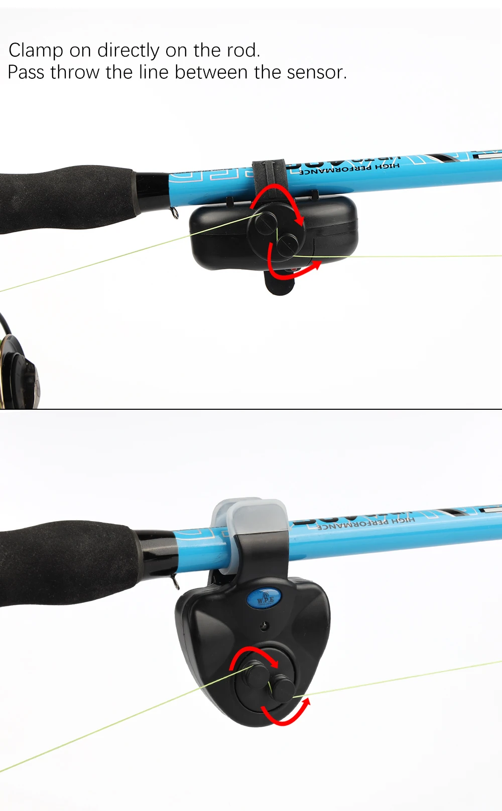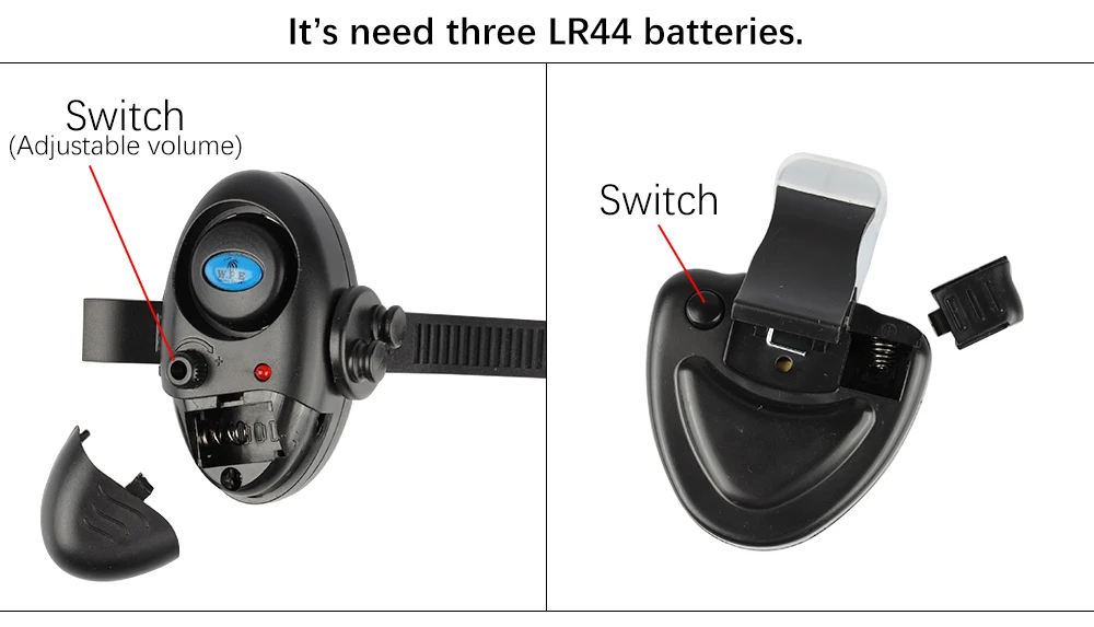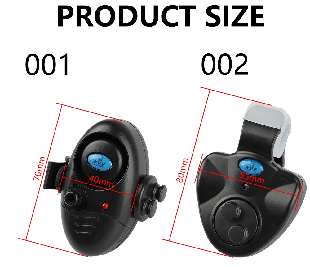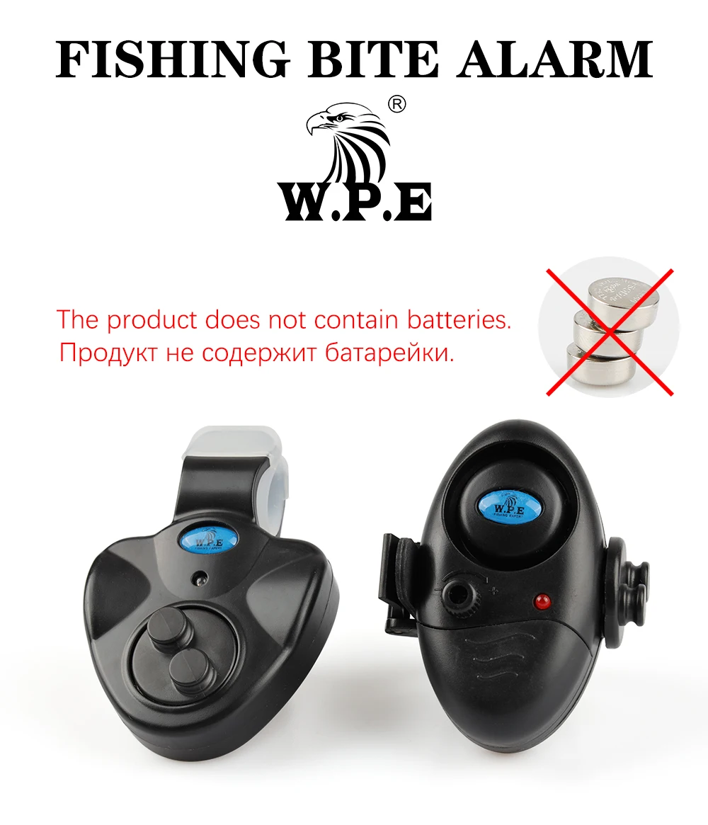 W.P.E-alarma de pesca con luz LED, 1 ud., zumbador electrónico, alarma de cebo de pesca en caña de pescar, accesorios de campana de pesca de carpa, aparejos
