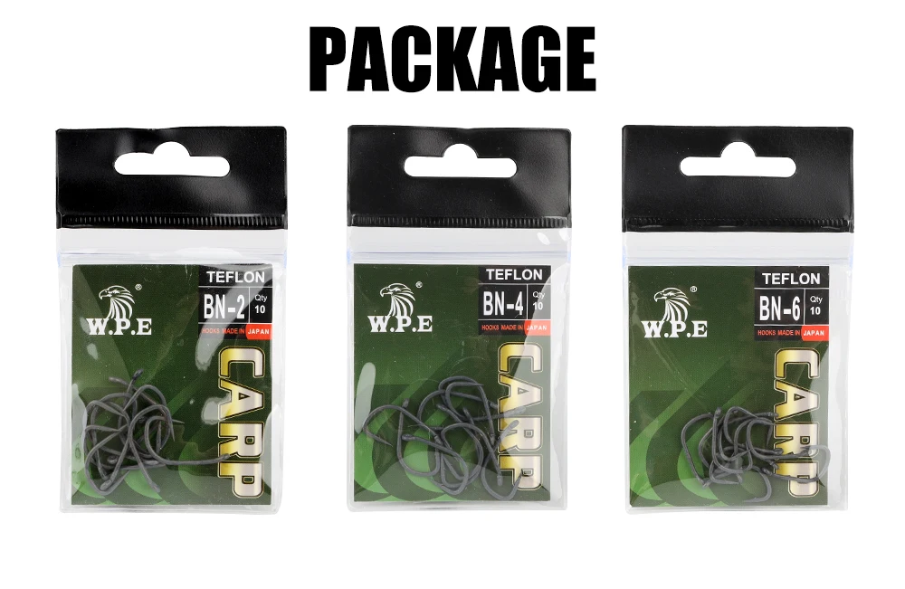 W.P.E-anzuelo de pesca de acero al carbono con púas, accesorios de pesca de carpa, tamaño 2 #/4 #/6 #, 30 Uds./50 unids/lote