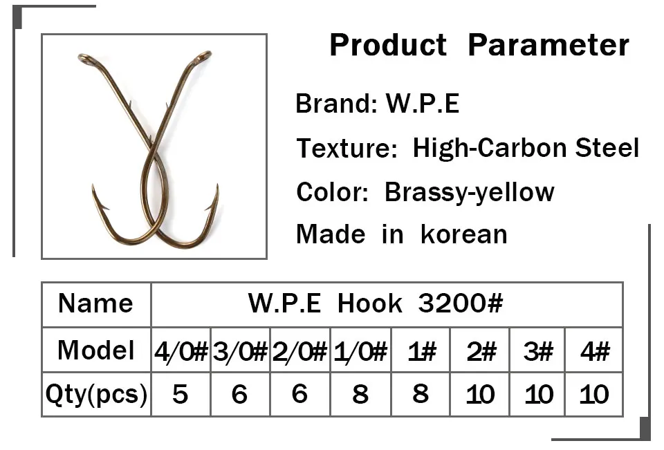 W.P.E-anzuelo de pesca con púas tamaño 1 #-4 #1/0 #-4/0 #, anzuelo de pesca de carpa coreano de acero al carbono, aparejos de pesca, 3 paquetes/lote