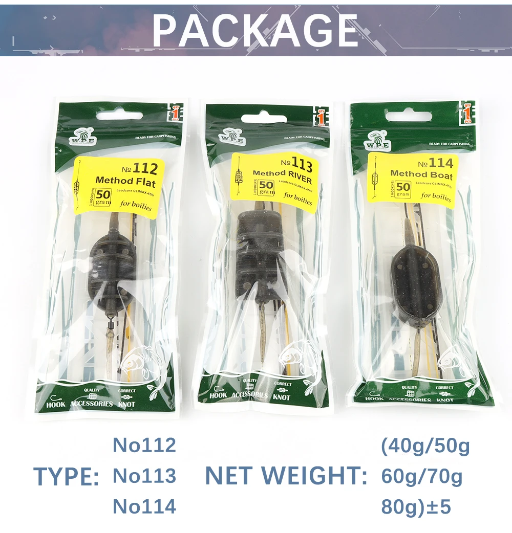 W.P.E-aparejo de pesca de carpa, alimentador con método capilar, 40g-80g, conjunto de anzuelos de pesca de carpa de europa, línea de núcleo de plomo, grupo de pesca de carpa, 1 ud.