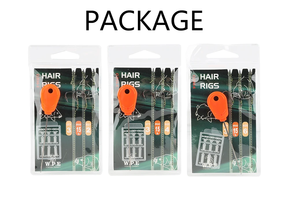 W.P.E-aparejos de Pesca para carpa, 1 paquete/3 unidades, 2 #/4 #/6 #, para el pelo