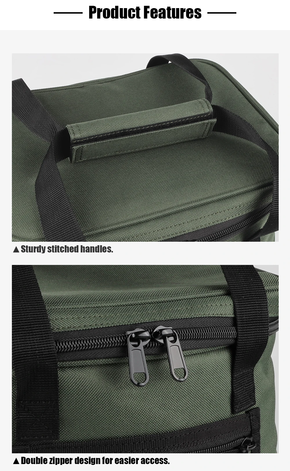 Material: 600D/PVC (tela Oxford), esponja, papel de aluminio