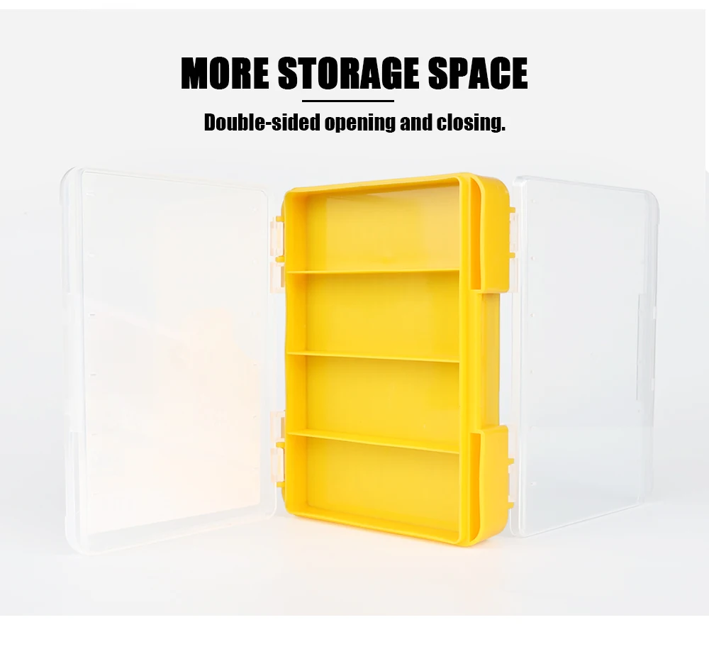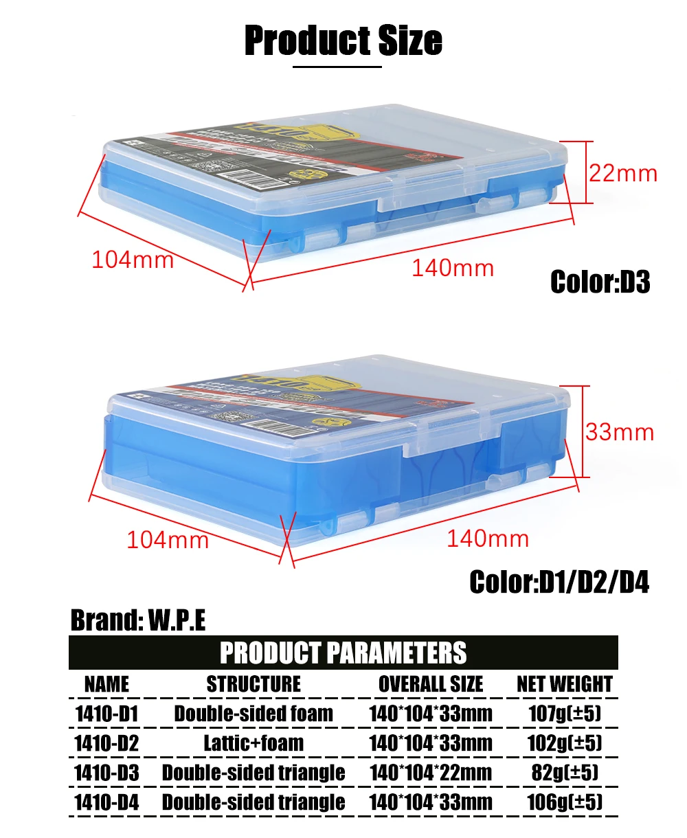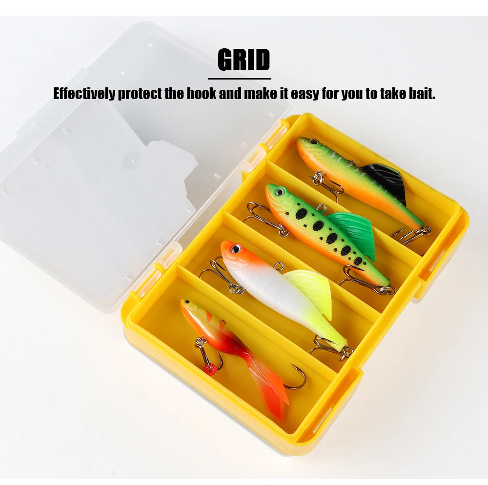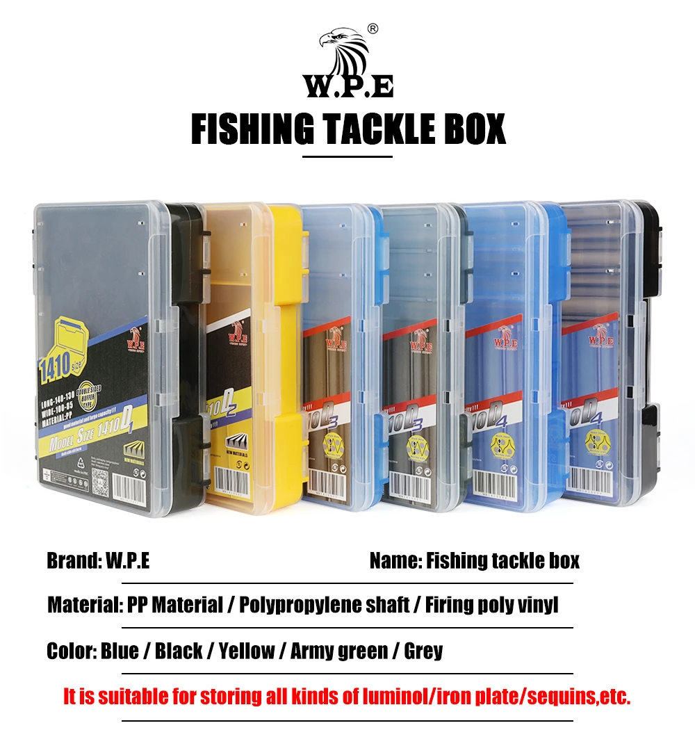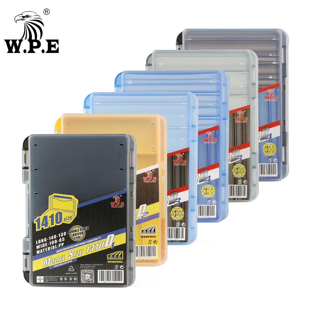 W.P.E Caja de señuelos de pesca, cajas de aparejos de pesca de doble cara, señuelo giratorio, Swimbaits, plantilla para lubina, anzuelo de señuelo suave, accesorios de caja de almacenamiento